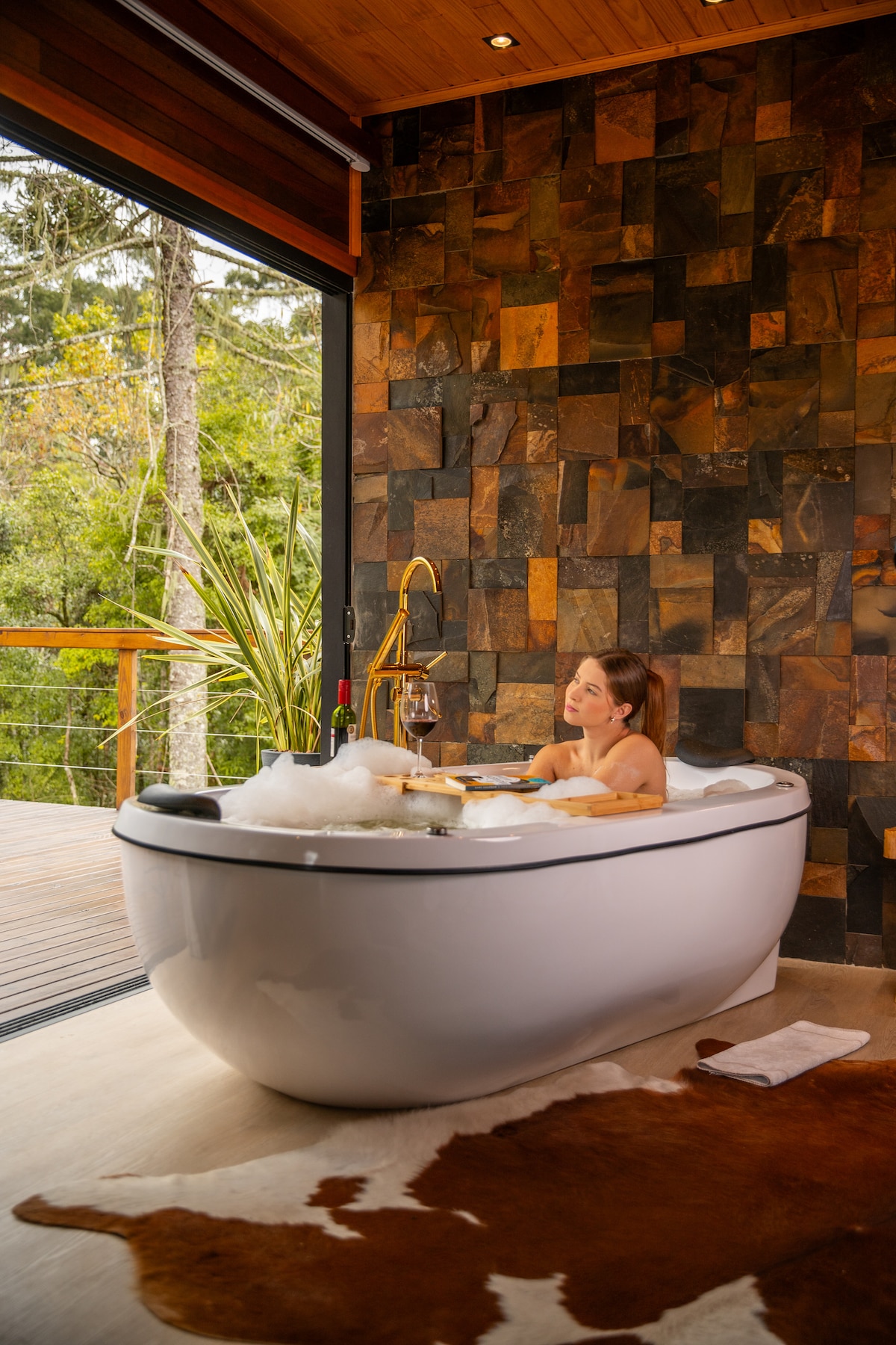 Fuja do mundo a dois em nossa cabana romântica na Serra. Um refúgio privativo com lareira dupla, cozinha equipada e banheira de hidromassagem. Totalmente automatizada pela Alexa, oferece ainda Smart TV, Wi-Fi, ar-condicionado e enxoval premium. Em meio ao silêncio e à natureza, viva momentos inesquecíveis com conforto e praticidade.