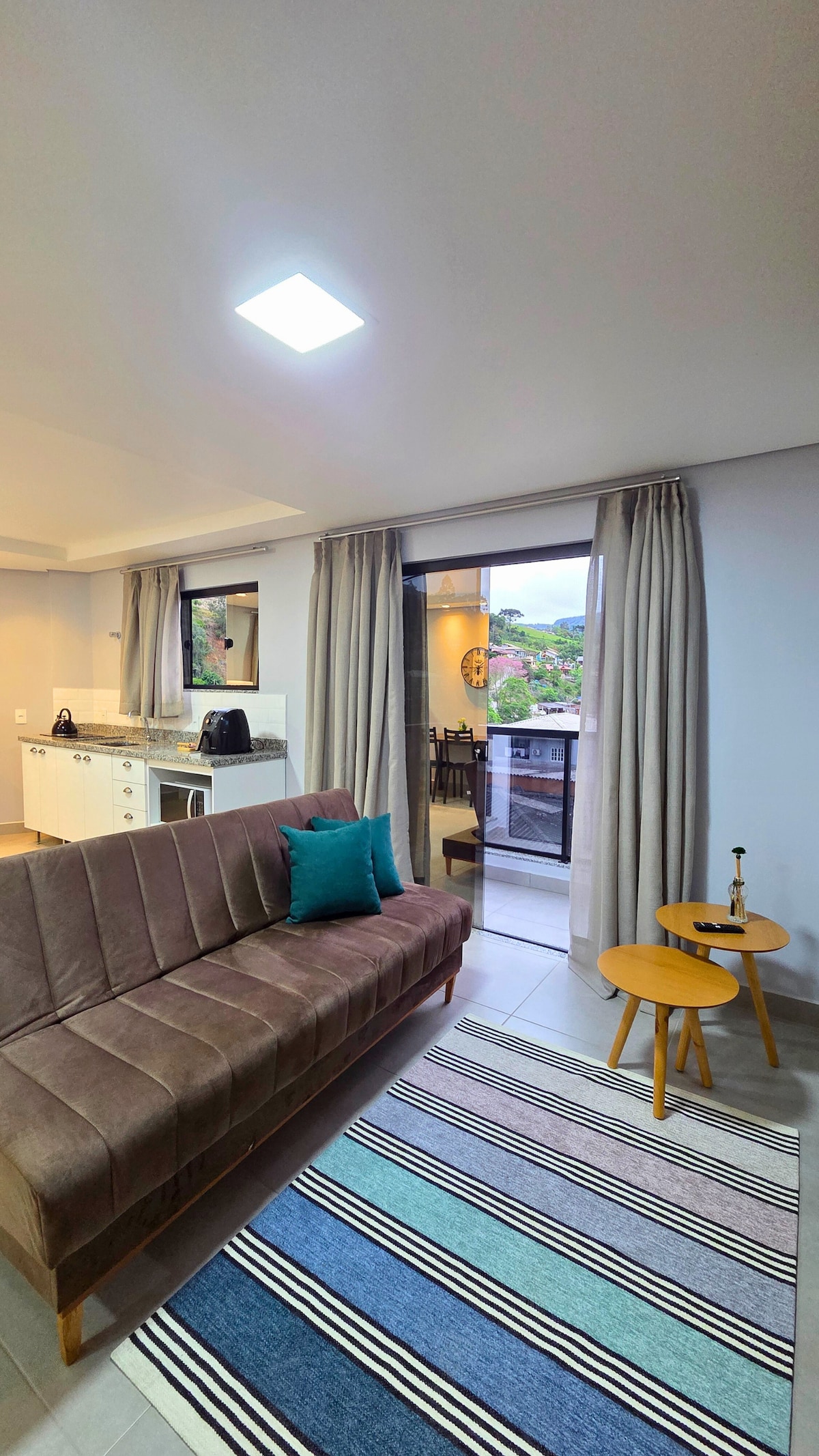 Hospede-se em um apartamento novíssimo, com móveis sob medida e todo o conforto que você merece na serra catarinense! Localizado na avenida principal de Urubici, você estará pertinho dos principais pontos turísticos da região, com padaria ao lado e mercadinho 24h bem embaixo do prédio — praticidade total para sua estadia.