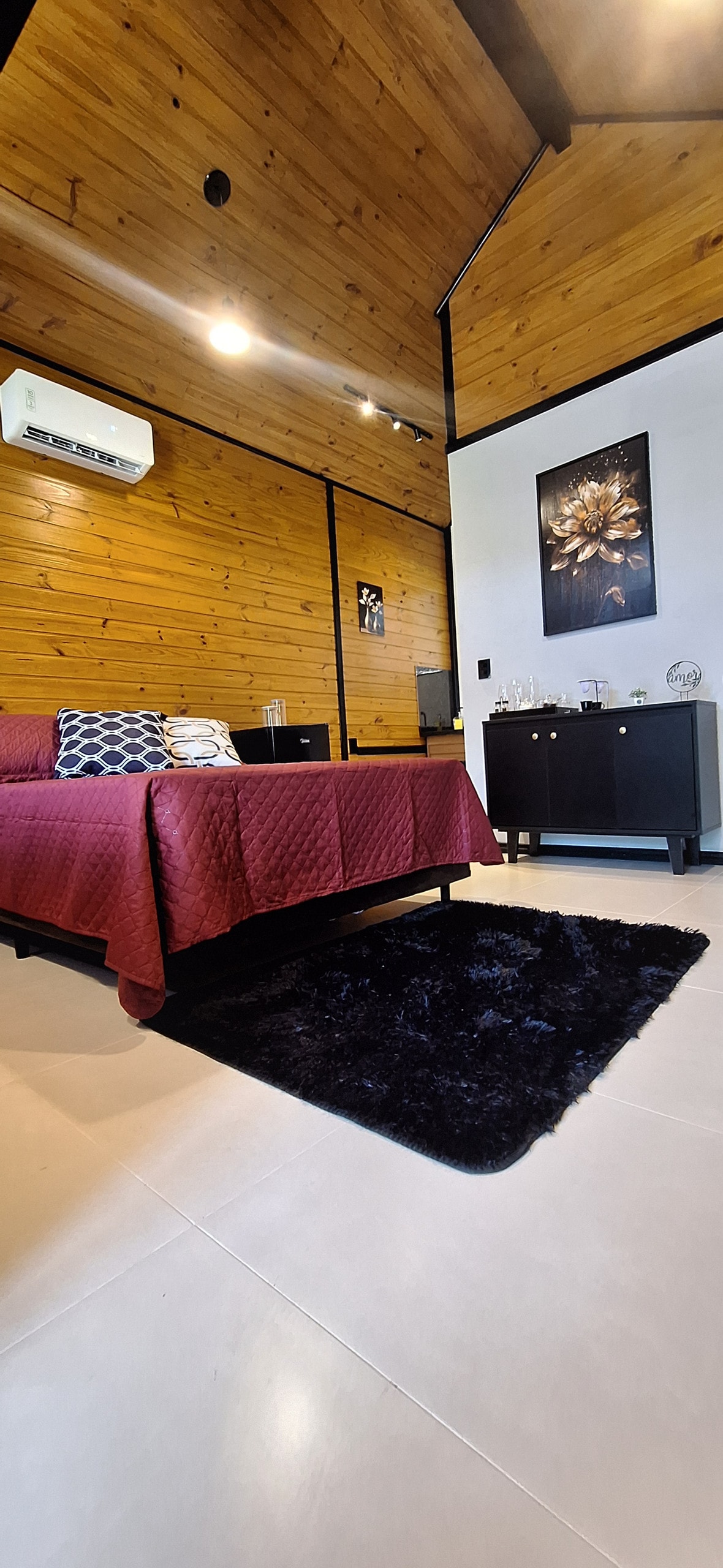 A cabana Merlot tem aproximadamente 60 m2 e foi pensada para receber um casal, mas acomoda confortavelmente até mais dois hóspedes, em um sofá-cama. Você vai se surpreender com um espaço integrado e totalmente equipado. Seu máximo conforto é nosso maior compromisso. Natureza inspiradora, belas paisagens e muita privacidade te aguardam. Nosso sitio conta com 7,5 hectares e apenas 3 cabanas. Há também alguns espaços compartilhados com as demais cabanas: piscina, lagoa, mirantes, trilha...