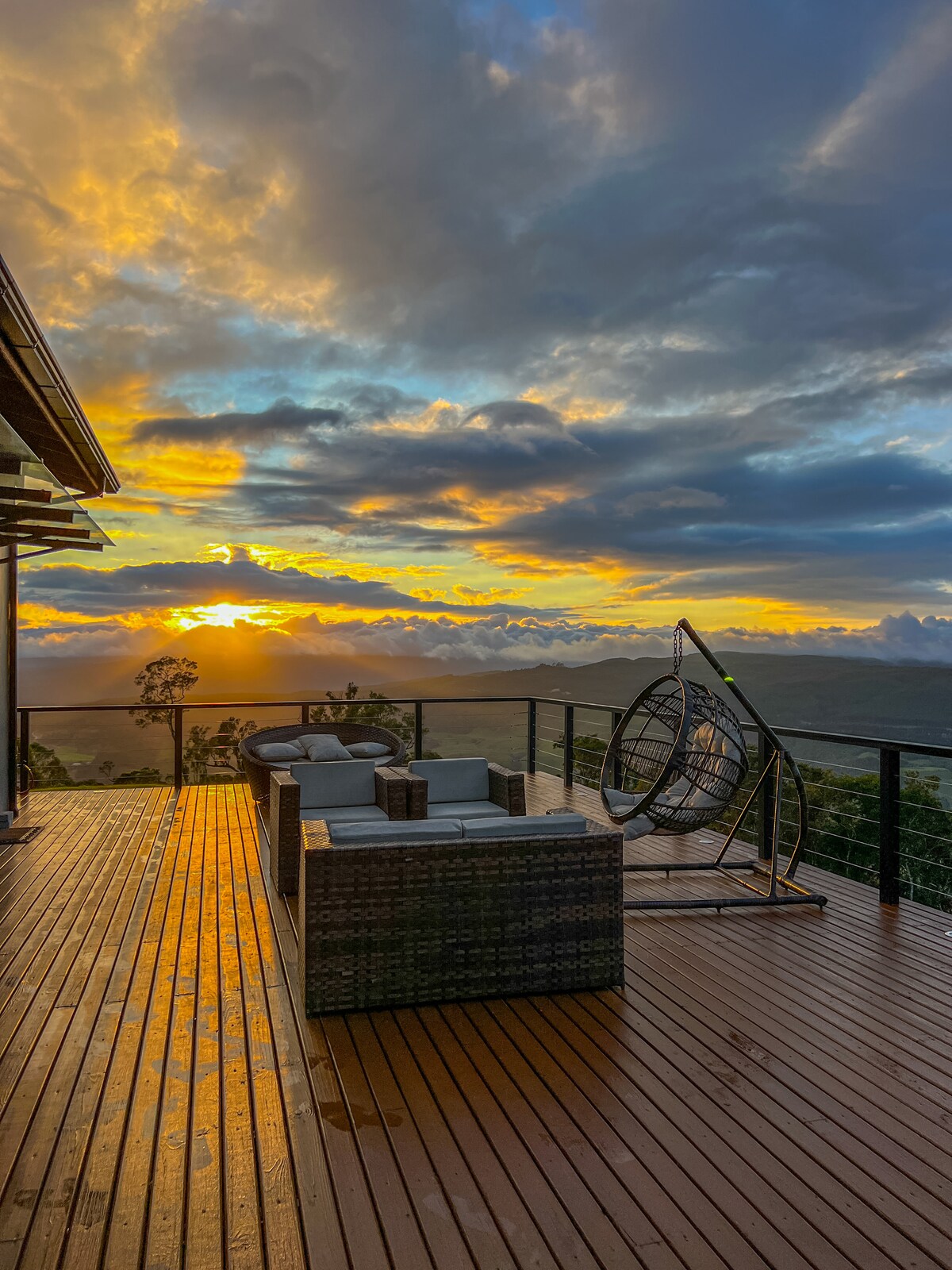 A Pousada Morada do Cedro é um refúgio luxuoso e moderno situado a mais de 1.000m de altitude, nas montanhas de Alfredo Wagner/SC. Com arquitetura elegante em madeira e vidro, oferece suíte confortável, cama de alto padrão, ar-condicionado e TV. O deck privativo com vista panorâmica torna cada momento especial. Ideal para casais que buscam exclusividade, conforto e uma experiência inesquecível em meio à natureza.