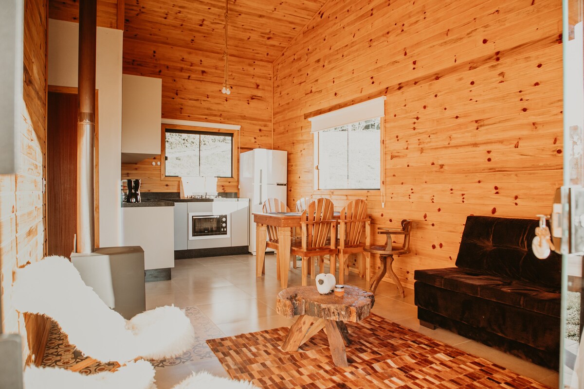 Fuja do mundo a dois em nossa cabana romântica na Serra. Um refúgio privativo com lareira dupla, cozinha equipada e banheira de hidromassagem. Totalmente automatizada pela Alexa, oferece ainda Smart TV, Wi-Fi, ar-condicionado e enxoval premium. Em meio ao silêncio e à natureza, viva momentos inesquecíveis com conforto e praticidade.