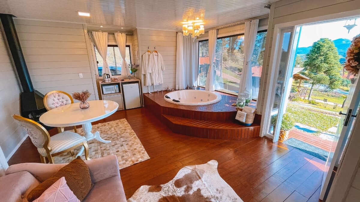 Um Chalé encantador em meio à Serra Catarinense com PISCINA AQUECIDA! 😍 Nosso Chalé de alto padrão na encantadora Serra Catarinense oferece uma experiência única de conforto, exclusividade e privacidade para momentos especiais! Em meio às montanhas, você desfruta do frio com lareira acolhedora, banheira de hidromassagem e um atendimento impecável, acompanhado de um cardápio com deliciosas comidas típicas e sabores tradicionais da região. Relaxe neste lugar único e tranquilo!