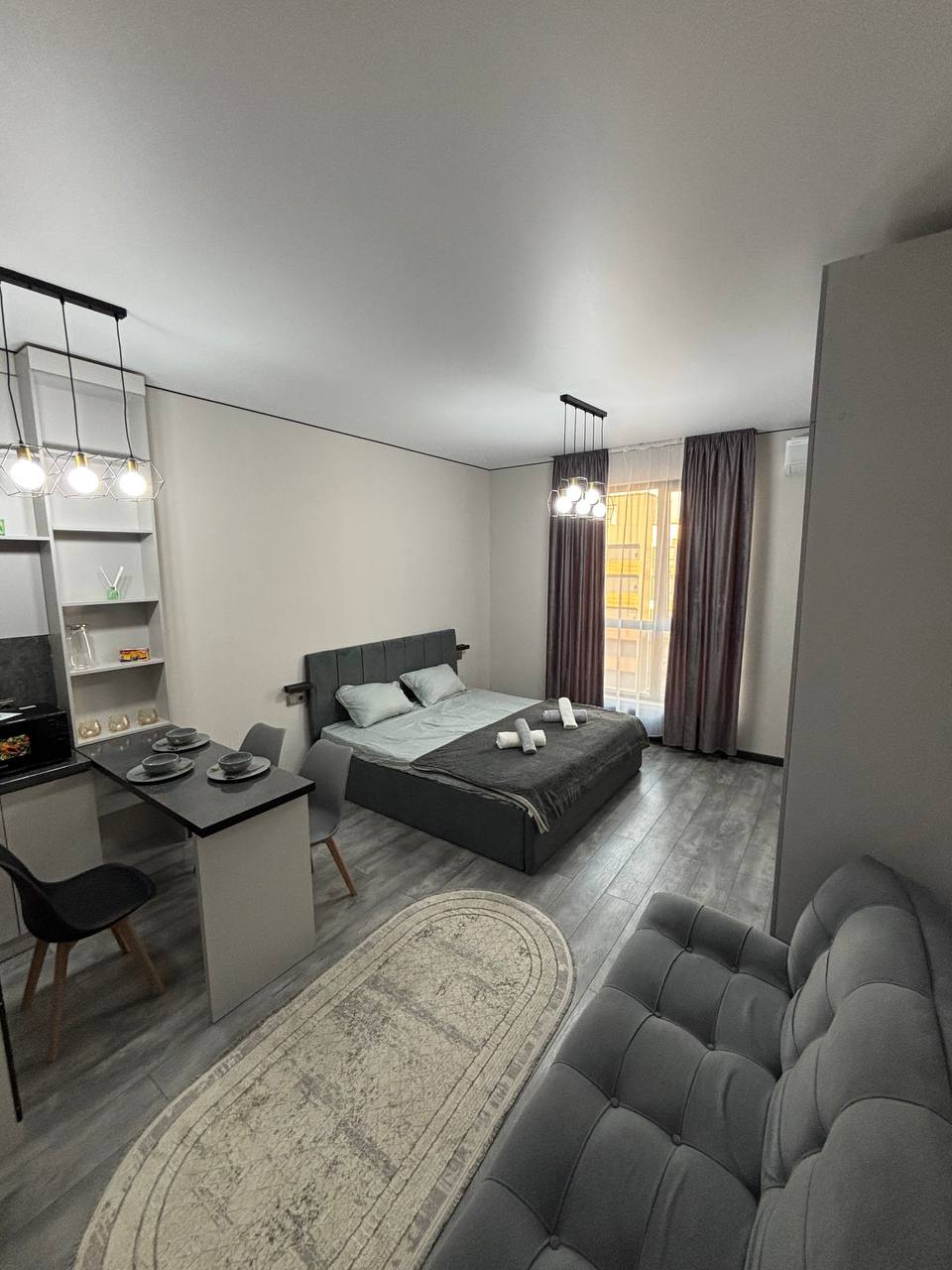 Welcome to your ideal stay in Almaty! Enjoy breathtaking mountain and city views right from your window. -7 minutes to Metro Station -сomfortable bed and cozy sofa -fully equipped kitchen -modern bathroom with fresh towels and toiletries - Wi-Fi and SmartTV The apartment is located in a safe and lively district, close to cafés, supermarkets, pharmacies, shopping malls! Self-check-in available Always ready to assist you — feel free to message any time. Relax, explore, feel at home!