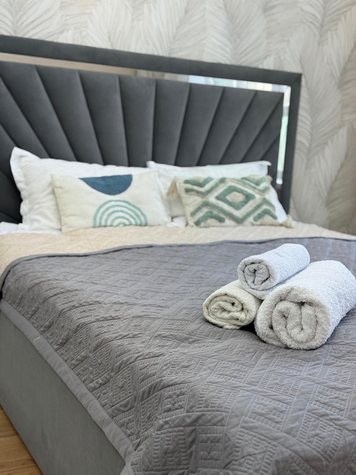 A very warm, cozy, recently refurbished and featuring modern design apartment. It is situated in a quiet area with walking distance to Atakent Expo center, botanical garden, grocery shops and bus stations. It's very comfy to stay in!