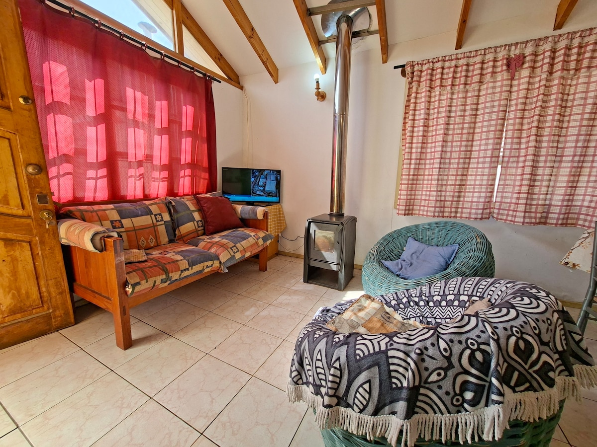Cabaña ubicada muy cerca de la playa (5 minutos caminando). Equipada; cocina con horno, refrigerador, ollas, platos. Sábanas y ropa de cama Tiene vista despejada a un cerro y árboles, sector muy tranquilo y seguro. La casa es petfriendly y todos son bienvenidos, por lo mismo se aconseja durante el día no dejar solo a los perritos en la casa ya que lloran y sufren mucho. Cercano a almacenes (5 minutos). Estacionamiento compartido.