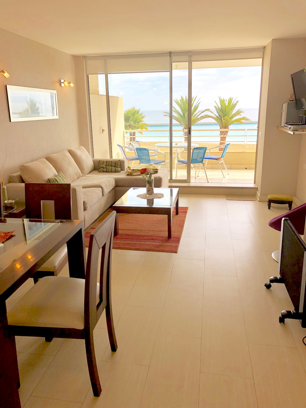 Disfruta una estadía cómoda y relajante en este departamento en primera línea, con vista directa al mar y una terraza ideal para desayunos, atardeceres y descanso frente al océano. Ubicado en un entorno tranquilo, ideal para desconectarse, descansar y disfrutar del sonido del mar, con fácil acceso a la playa y a los principales atractivos de Algarrobo. Perfecto para quienes buscan comodidad, buena ubicación y una vista privilegiada. 🌊✨