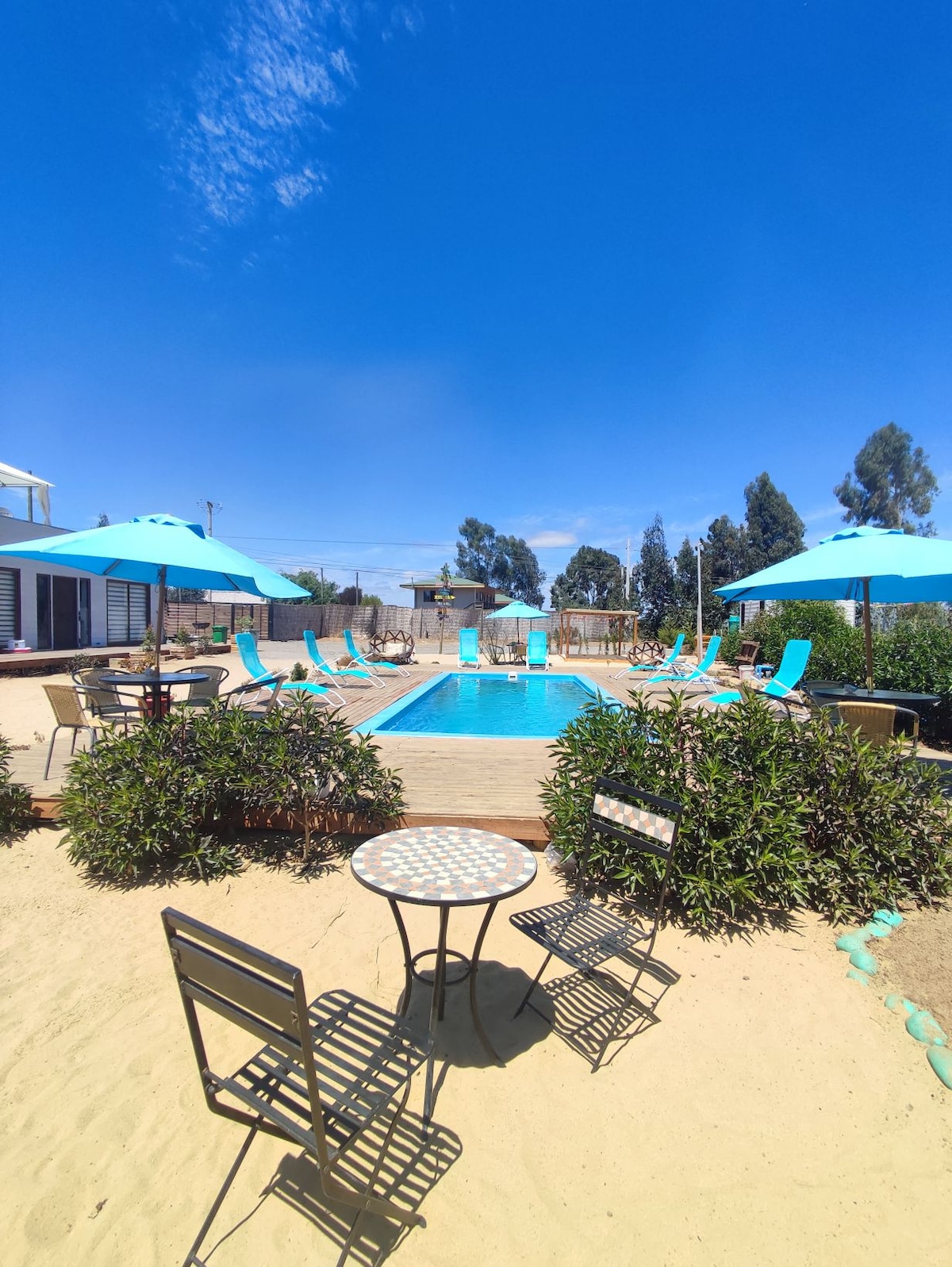 Parcela con Casa 4 dormitorios con 4 camas dobles + 2 cama de 1 plaza, 2 baños, Piscina muy amplia, Tinaja , Quincho, chimenea amesti, galeria amplia, mucho espacio para estar en familia, todo es rustico pero muy comodo y muy tranquilo a menos de 15 minutos de la playa principal de algarrobo, Playa Mirasol, a 18 KM de Tunquen, Condominio cerrado , ideal para desconectarse y disfrutar, muy seguro y tranquilo, mucho espacio para estacionar, y disfrutar.