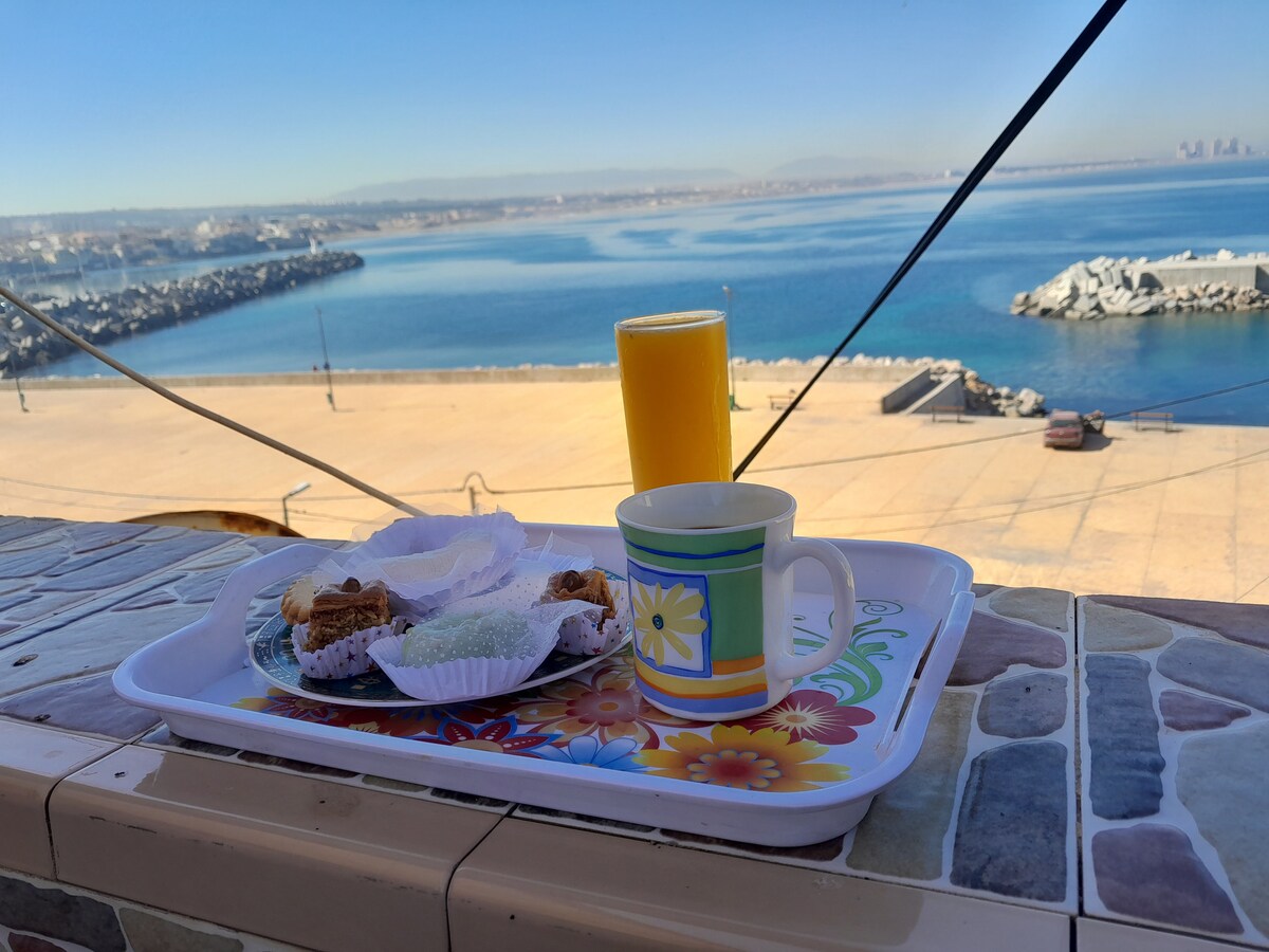 Villa spacieuse avec une grande terrasse surplombant la mer. Accès direct à une plage privée par des escaliers — idéal pour se détendre au soleil et savourer le climat d'Alger. La maison dispose de 2 chambres, d’un salon, d’une salle à manger, d’une cuisine, d’un hall, d’une salle de bain et de toilettes. Commerces, supermarchés, mosquée,pharmacie, restaurants à moins de 100 mètres Climatisation, lave-linge, TV, réfrigérateur, cuisinière, cafetière