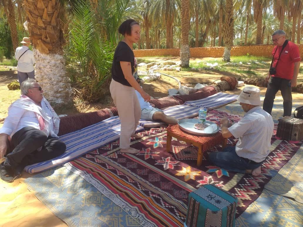 Au cœur du Ksar de Taghit, face à la mosquée, la maison d’hôte Lalla Fatma vous accueille chez Riyade pour une immersion authentique dans le Sahara algérien. Jusqu’à 8 personnes : salon traditionnel avec cheminée, 2 chambres communicantes et salle de bain. Petit-déjeuner inclus (café ou thé, jus, confiture ou mélasse de datte, œufs). Guide local possible en supplément pour découvrir les dunes et le ksar. Tarif selon l’âge : Gratuit de 1 à 13 ans, et à partir de 14 ans, même tarif que les adultes