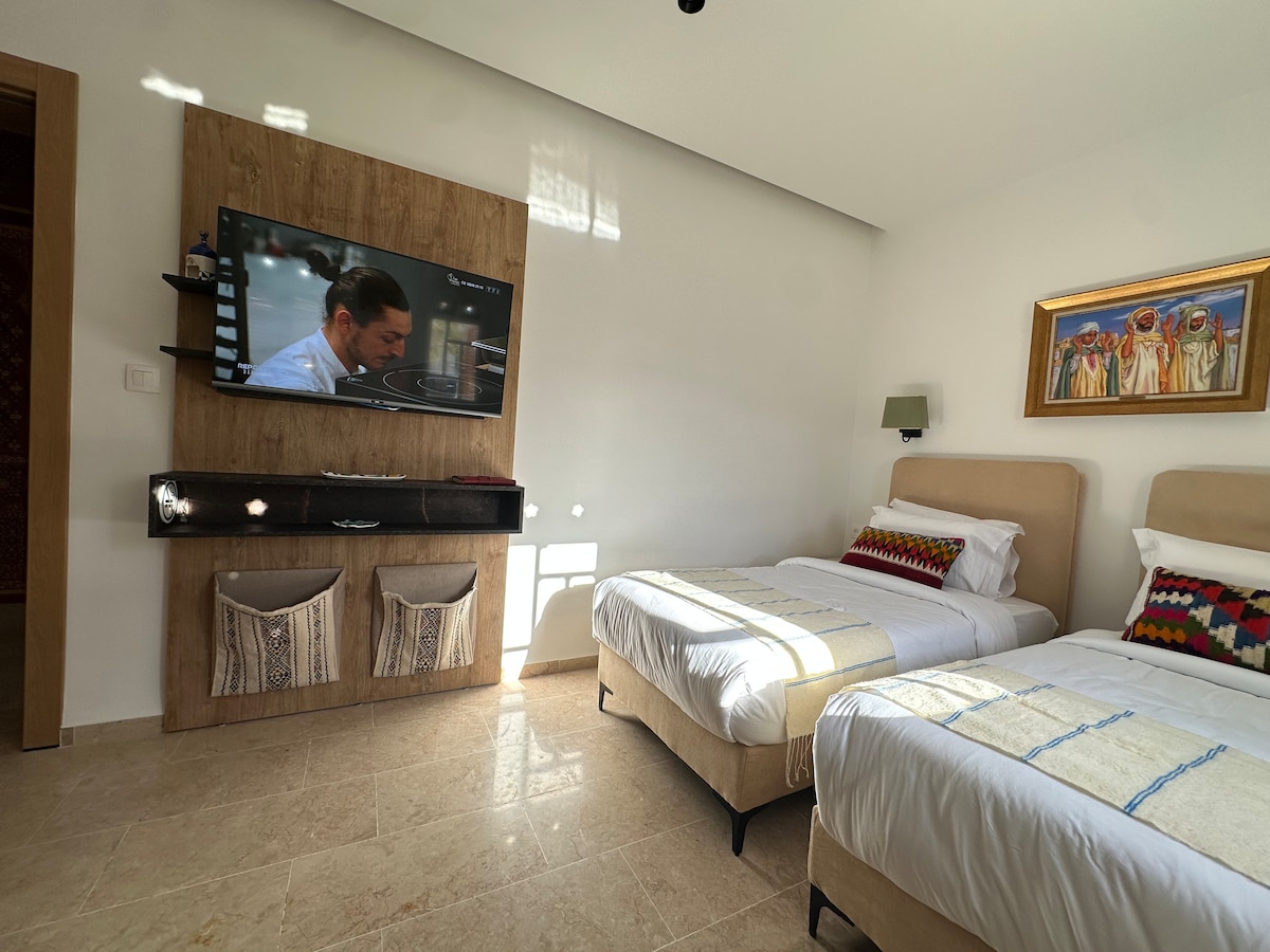 Découvrez notre Maison Traditionnelle Rénovée - Construite entre 1920 et 1923, plongez dans l'histoire de notre région lors d'un séjour unique. Avec 5 chambres, dont une suite, 2 WC & douches spacieuses, terrasse, cour intérieure, véranda, vue panoramique sur les montagnes, et salon traditionnel Amazigh, profitez du charme authentique et du confort moderne, au-delà des activités que l'on propose (randonnées équestres et pédestres, etc.) À très bientôt! Équipe du Refuge du Cavalier