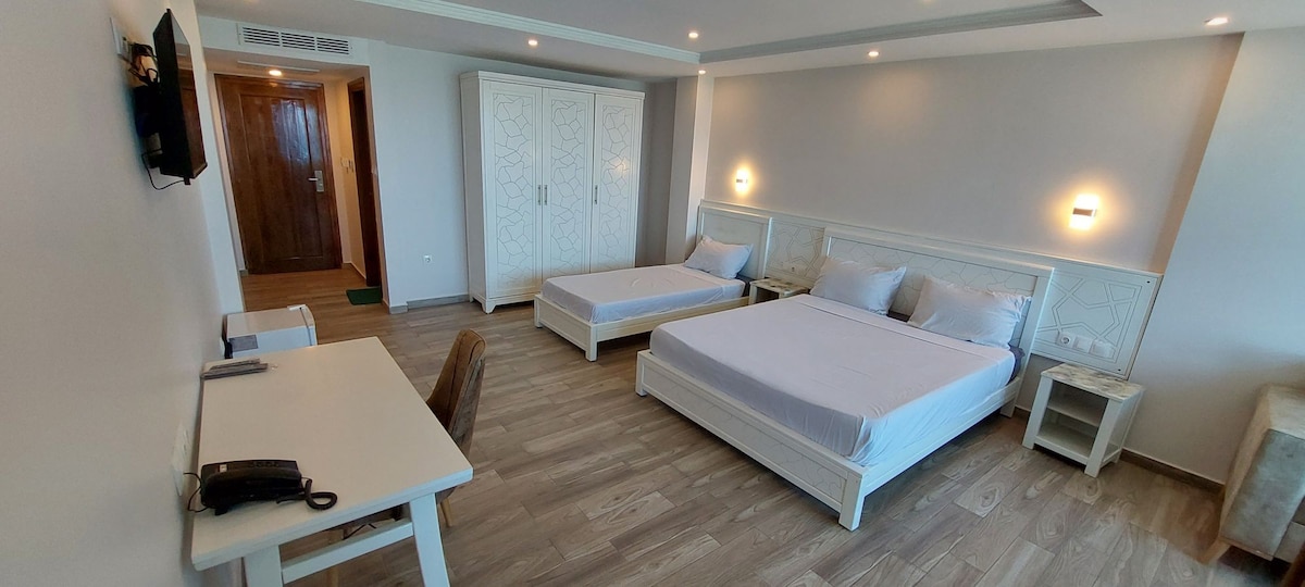 Résidence VacanSea propose une superbe chambre d'hôtel bien équipé situé en plein front de mer beaumarché au centre ville de Jijel, il a une vue splendide sur la corniche DJIJELIENNE. la chambre dispose de toutes les commodités pour passer un agréable séjour à Jijel. NB: Carnet de famille obligatoire ÉTAGE : 1/6 sans ascenseur
