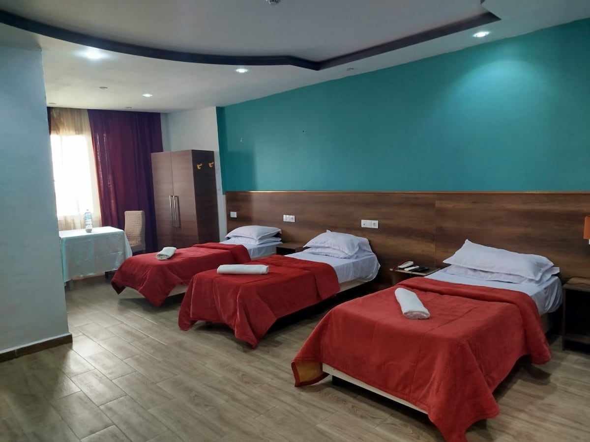Profitez d’un séjour agréable dans cet hôtel 3 étoiles idéalement situé en plein centre d’Oran. Alliant confort et praticité, il vous accueille dans une ambiance chaleureuse grâce à un personnel attentif et disponible. Les chambres, impeccablement propres et soigneusement aménagées, offrent un cadre parfait aussi bien pour les séjours professionnels que touristiques. Chaque matin, savourez un petit-déjeuner inclus, servi sous forme de buffet varié et généreux, pour bien commencer la journée.