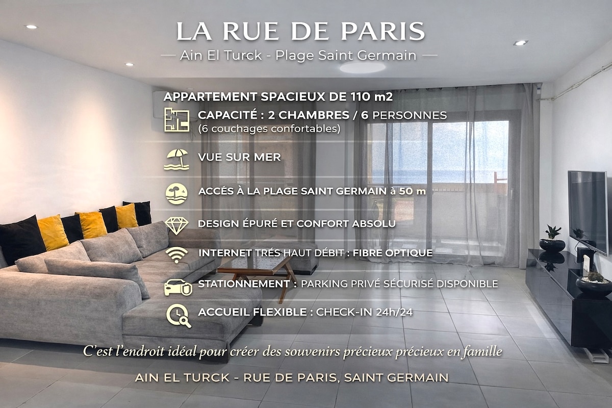 Superbe appartement à 1min de la mer ,à Aïn turk. Dans une résidence sécurisée avec ascenseur et une place de parking privées. Un grand séjour donnant sur une terrasse avec vue imprenable sur la mer, deux chambres spacieuses et une cuisine toute équipée.. À proximité de multiples restaurants et commerces, en face de l’hôtel Éden. Plusieures plages à proximité