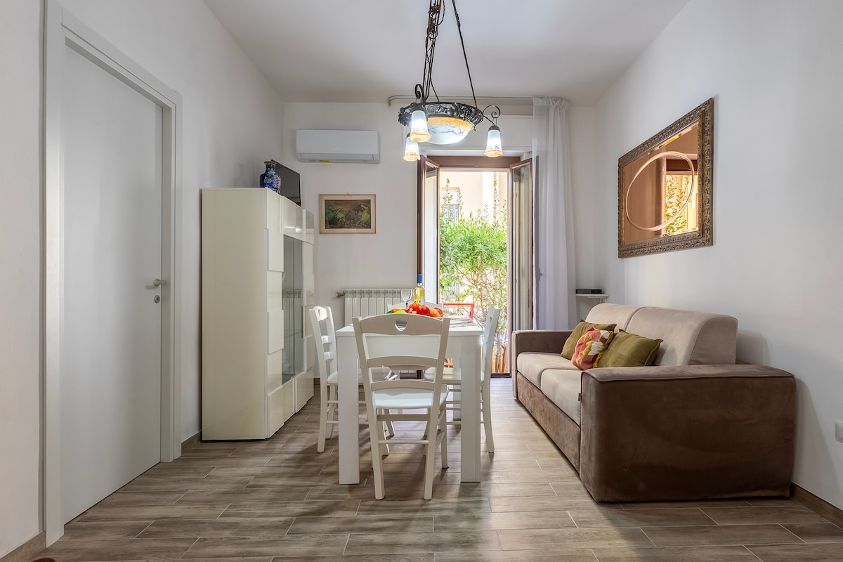 Welcome to L'angolo Fiorito, a gateway to a perfect blend of modern comfort and historical charm. Nestled within the Old Town, our apartment invites you to indulge in a peaceful stay while being just moments away from a vibrant experiences. Just a minute away, the biking and walking path along sea will take you from the town to the beach. Seeking culinary delights? Countless restaurants, bars, and charming shops just steps away. After a day of exploration unwind on the patio of the courtyard.