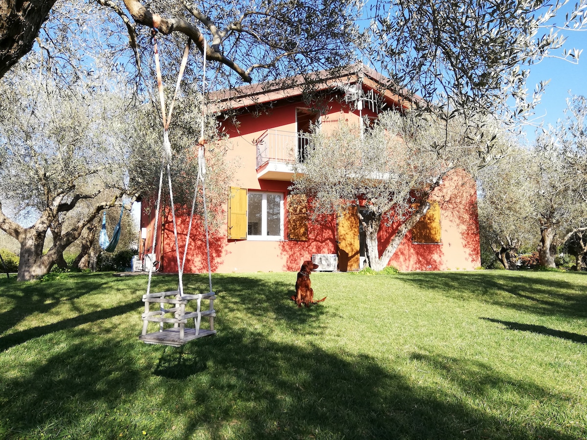 New apartment with high quality finish: two double bedrooms, both with private bathroom and living area, an open space with kitchen equipped with all comforts, dining table, sofa and TV. Each room has air conditioning. The outside patio is equipped with table and chairs: a large common garden and a private barbecue are available. We are in the countryside but close to the city, to the public services and the beaches, far from the summer hustle and traffic.