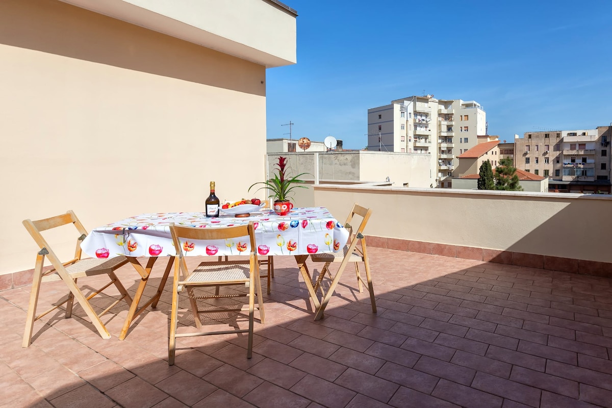 Ampio ed elegante appartamento situato in zona centrale a pochi minuti dal caratteristico centro storico, dal lungomare Barcellona, dalla spiaggia di S.Giovanni e da tutti i servizi che la città può offrire.L'appartamento di circa 90 mq è situato al 1° piano di un edificio di pregio di recentissima costruzione dotato di ascensore e privo di barriere architettoniche. Composto da ampia sala con cucina componibile, 2 camere da letto matrimoniali con bagno privato ciascuna e terrazzo. Box auto .