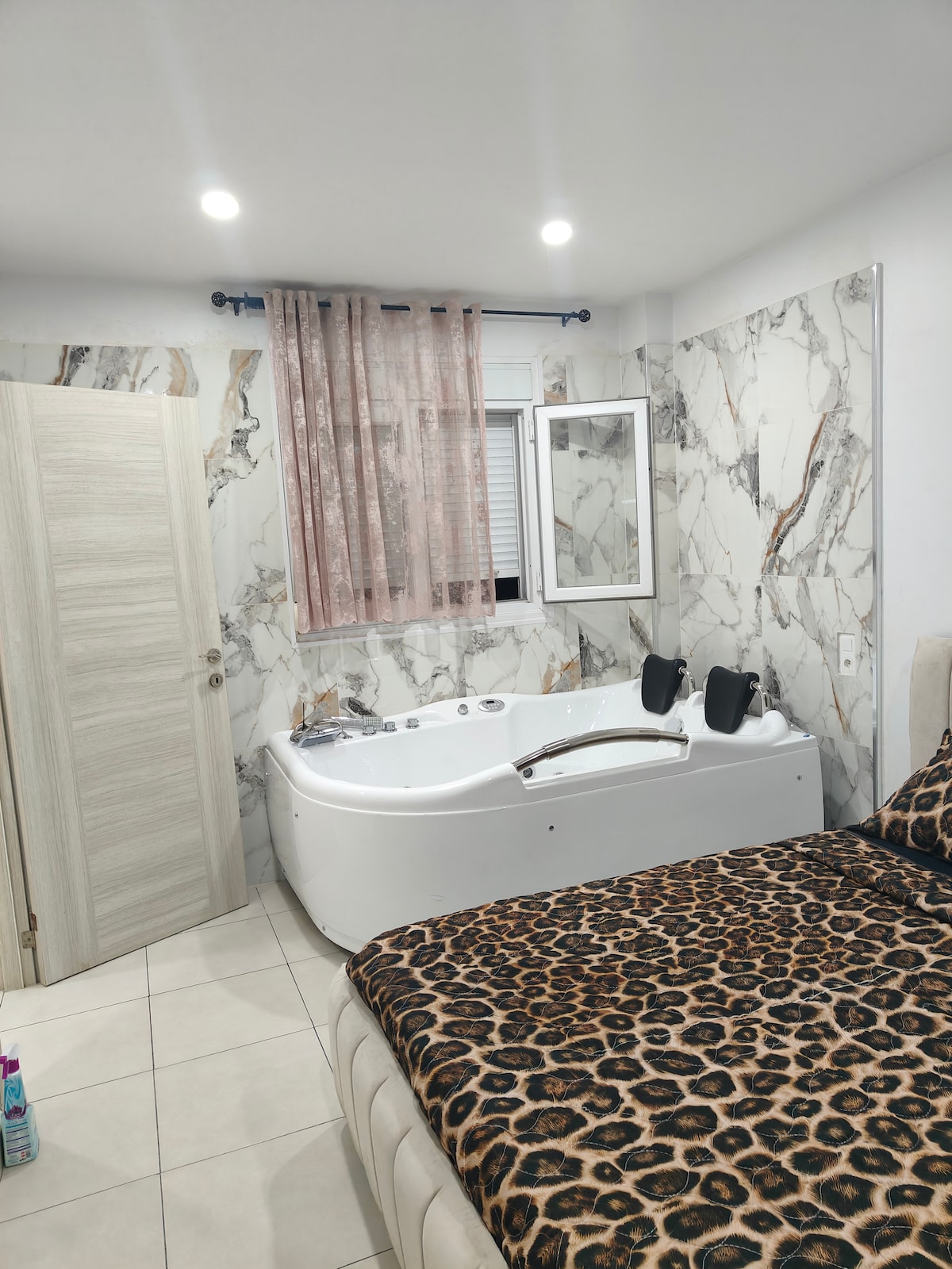 STRICTEMENT INTERDIT AU COUPLE SANS LIVRET DE FAMILLE deux chambres et un salon idéal pour un séjour familiale 🧑🍼🤱à 10 min de l’aéroport. Chambre type Love Room avec jacuzzi privé pour un moment de détente à deux. Salon avec clic-clac, cuisine américaine équipée et patio cosy pour vos repas ou petits-déjeuners en extérieur. Ambiance chaleureuse, déco soignée, et tout le confort nécessaire pour un séjour inoubliable. Possible d'avoir un accès privé au hamam sous réservation d'un créneau de2h