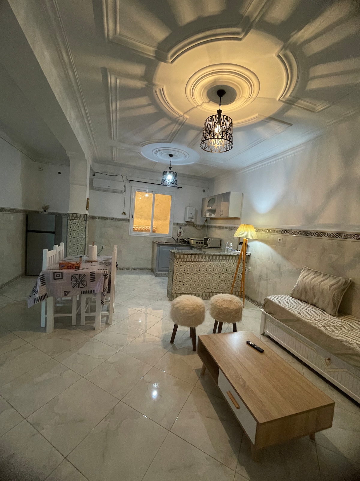 Bonjour 👋 résidence Nelson vous propose F2 de 130 mètre , au 3em étage avec 3 terrasse avec vu qui donne sur tout la ville et notamment la menara de grand mosqué d’Alger c’est impressionnant la résidence situé à 20 mn d’Alger centre et 10mn de l’aéroport 10 mn de plage, sablette beach pratique pour vous Déplacement sur Alger.Disposant l’hébergement Accès au wi-fi gratuit Télévision écrans plats. 43 pousse 2 Climatisation réfrigérateur, micro-ondes, cafetière, expresso, cuisinière, lave-linge