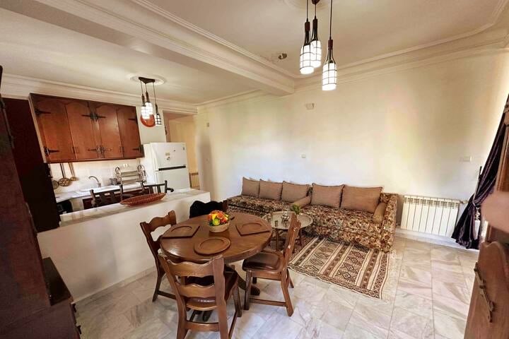 Profitez d'un logement élégant et central au coeur du quartier animé de Sidi Yahia . Vous séjournerez dans un bel appartement qui peut accueillir jusqu'a 4 adultes et 1 enfant l'appartement dispose d'une salle de bain avec douche a l'italienne et d'une cuisine entièrement équipée ..vous pourrez profiter de la terrasse en été pour déguster the a la menthe et cocktails ou y prendre vos repas . Des serviettes et draps de bain ainsı que le linge de lit sont fournis et changes 1 fois par semaine.