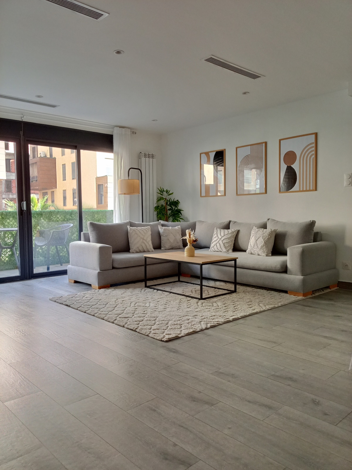 Appartement moderne, spacieux, épuré et entièrement climatisé. Il est composé d'un grand salon donnant sur le balcon avec vue sur mer, une cuisine entièrement équipée. Il y a 3 chambres dont une suite parentale avec douche à l’italienne et WC. Une baignoire et 1 WC indépendant Résidence de haut standing sécurisé avec gardien 24h/24h. Une place de parking au sous-sol ascenseur. Le logement peut accueillir jusqu’à 6 personnes. Uniquement pour les familles. Les fêtes sont strictement interdites