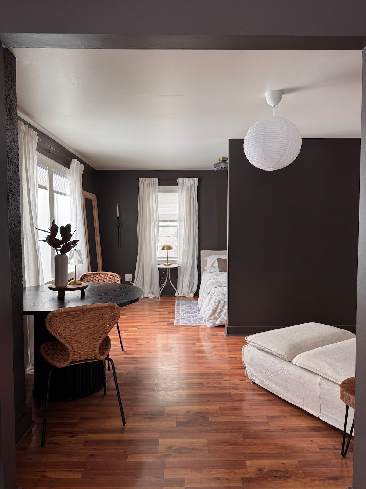 🇨🇦 Enjoy this centrally located clean boho apartment with private entrance. This is a one queen bed apartment with open floor plan. Fully equipped kitchen, full bathroom, breakfast bar, desk and dining area. You'll have everything you need for your short or long-term stay. This is located in the basement of a house. Host lives upstairs with with her dog. The apartment is completely private. Backyard access is shared.