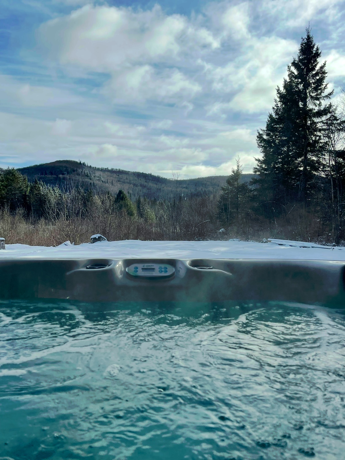 HOT TUB FOR SEVEN The main house sleeps 9 Great place for families and friends. The Main house has a large kitchen, dining room, living room, 3 bathrooms, laundry room and 19 acres in the backyard. Great for hunting small game, fishing, atv riding right to the Falls or swimming. Kayaks are available at no charge. Searchmont Ski Resort is right around the corner, 3 minutes away. The attached chalet is occupied but totally separate from the main house. Starlink satellite for fast internet
