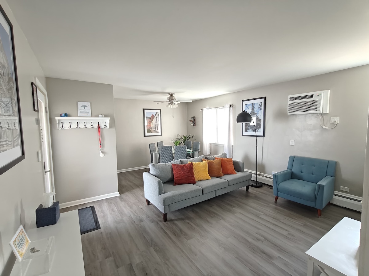 Charming Historic Apartment in Downtown Crystal Lake Spacious second-floor apartment overlooking Downtown Crystal Lake, located in a vintage 1875 farmhouse. Steps away from over 100 restaurants, shops, coffee spots, and bars, all within a 2-minute walk. Enjoy updated bedding, modern comforts, and vintage finishes in a quiet space with no shared walls or upstairs neighbors. One parking space included, with additional lot park CHECKOUT OUR OTHER PROPERTIES HERE: www.airbnb.com/p/breganproperties