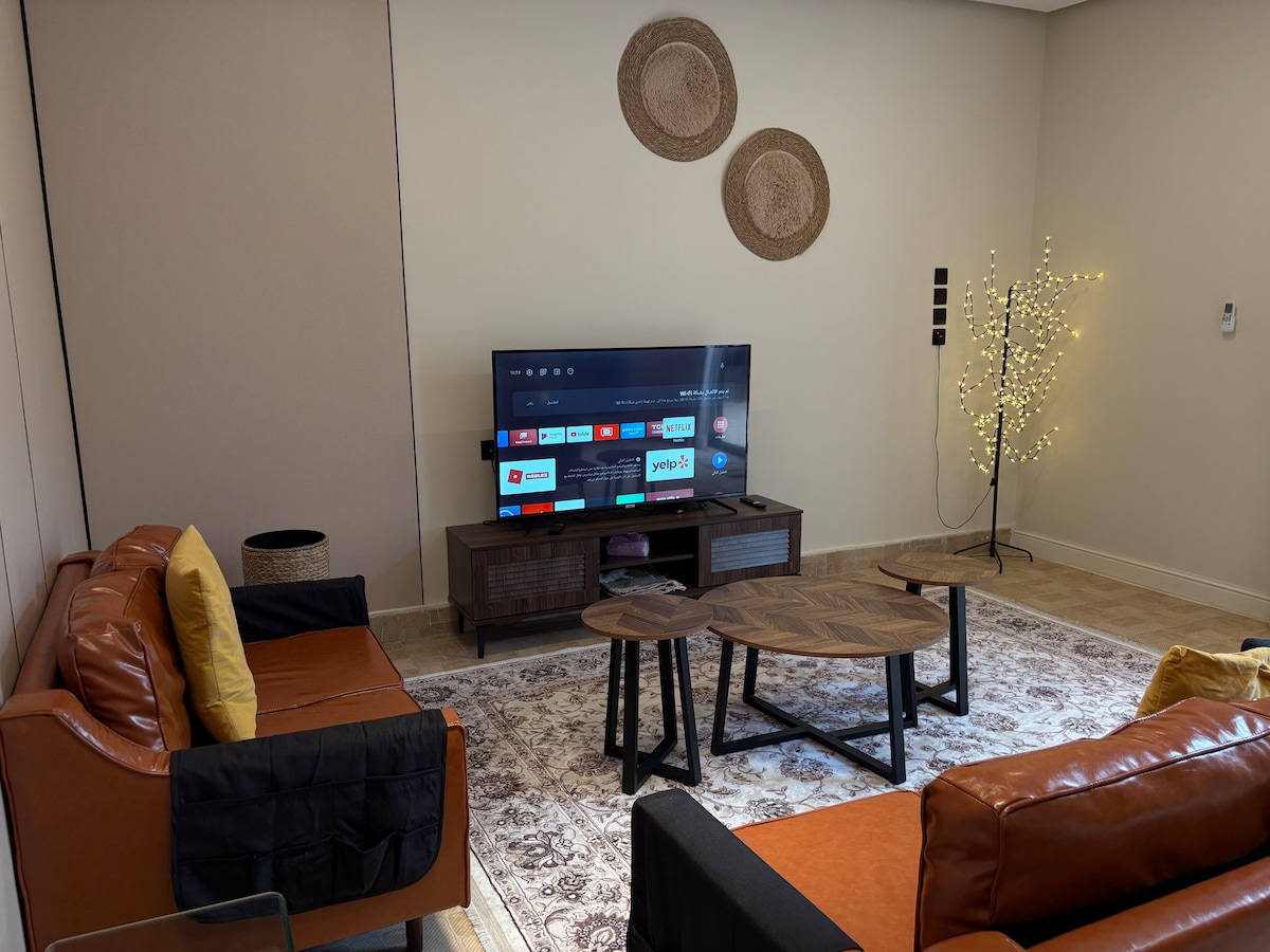 استرخ في هذا المسكن الهادئ والأنيق.. جناح فاخر بإطلالة بانورامية كاملة على الحديقة وبها اشجار التوت وورد الجوري والعنب، وخدمة الدخول الذكي بالاضافة الى وجود شاشة حديثة كبيرة بتقنية UHD 4K باشتراك في خدمة iptv جميع قنوات العالم بالاضافة لقنوات Bein الرياضية والسعودية الرياضية وال showtime و Netflix وجميع الافلام والمسلسلات،، (( وكاس العالم 😍)) ويوجد جامع قريب من المسكن.. وقريبة من منتزه الردف والمطاعم والاسواق والكافيهات الفاخرة. ويوجد مرشد سياحي لتزويد الضيوف بجميع الاماكن التي تستحق الزيارة..