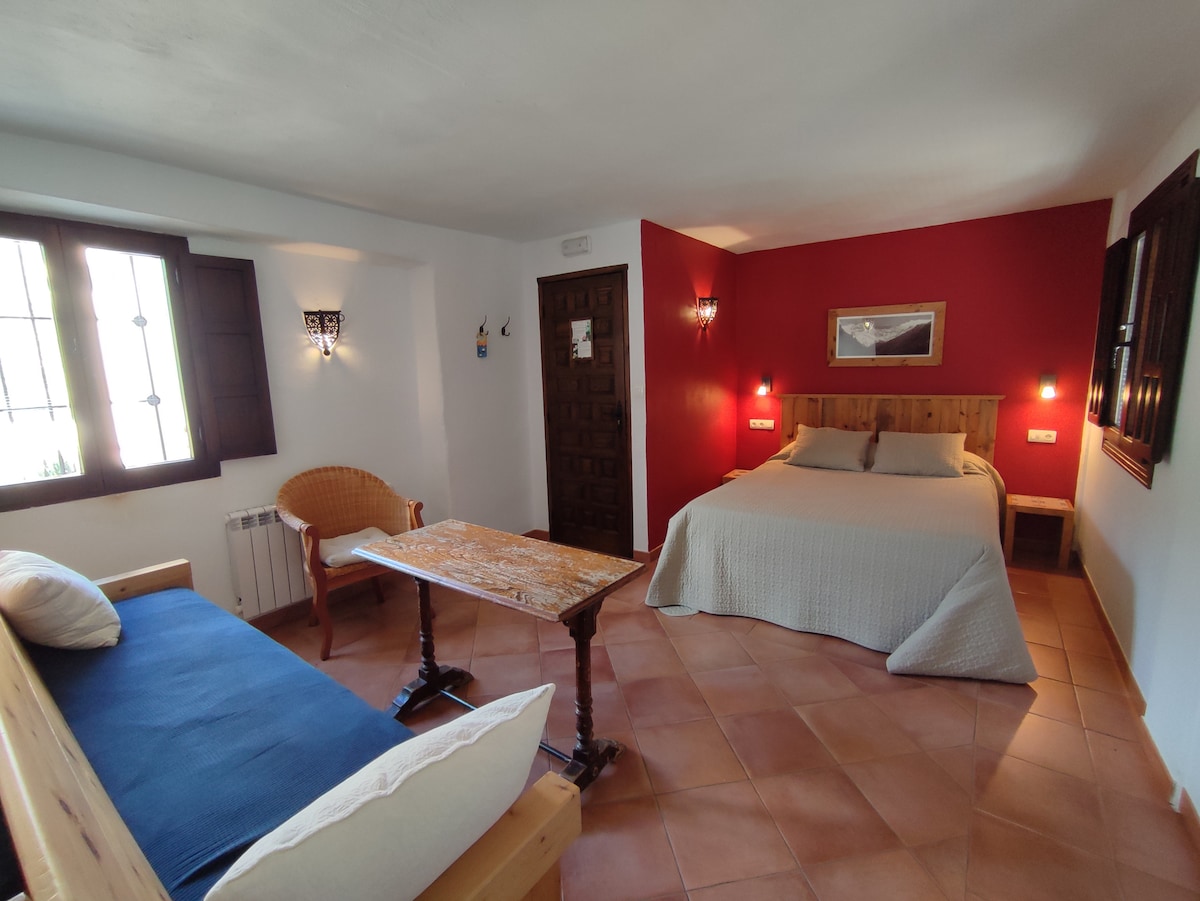 The room is one of 3 climatised rooms that we rent out. The rural house is located on the outskirts of the Andalusian town of Güéjar Sierra. You are a 10 minute walk from the main square with lots of bars. Sierra Nevada is 5 minutes away for walking. The ski slopes are a 20 minute drive away, as is Granada. The beach is one hour from the house. From the terrace you have a view of the reservoir and above it a spectacular sunset. From June to September we place a jacuzzi.