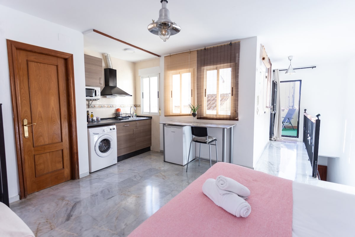 Beautiful Penthouse to treat yourself!!! In the center of Granada wifi and parking included (3 min. from the apartment) One bedroom and one full bathroom. One double bed visco elástica mattress 155X195) Thanks to it's privileged location you can visit on foot the entire old town of Granada and the most important monuments. Metro and Bus stop at the foot of the building. Super easy to get to by public transport!