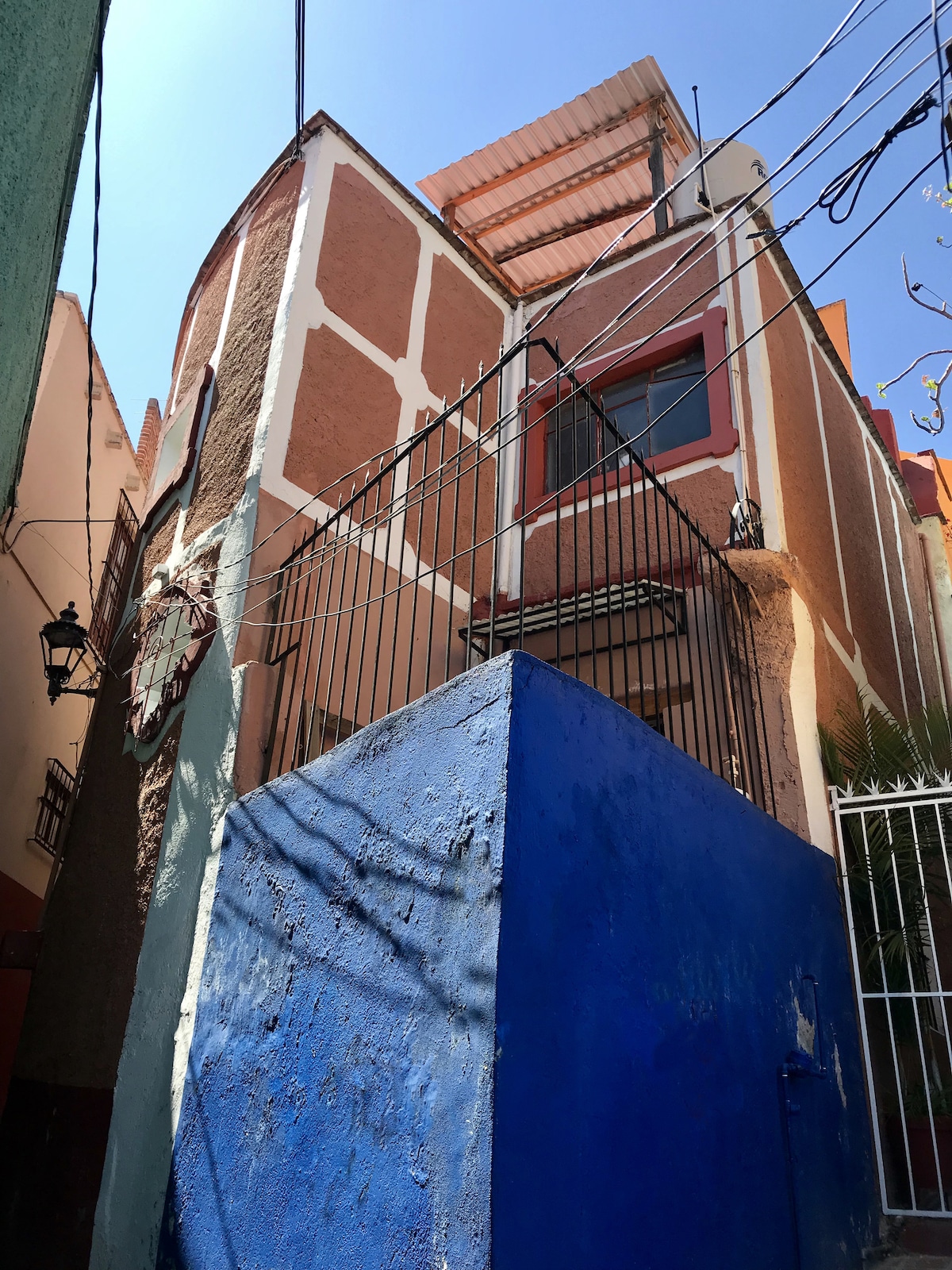 Located in historic downtown Guanajuato, experience a wonderful stay in a comfortable and charming apartment. Little garden with year round fruit bearing lime tree. Ecologically minded, solar water heaters and a cistern for rain water. Terrace with stunning views, daybed and hammock. Just minutes from the University of G, Plaza del Baratillo, Teatro Juarez and Jardín Union. A rarity in Guanajuato - air-conditioned bedrooms! Guests must be comfortable walking, uphill walk and stairs!