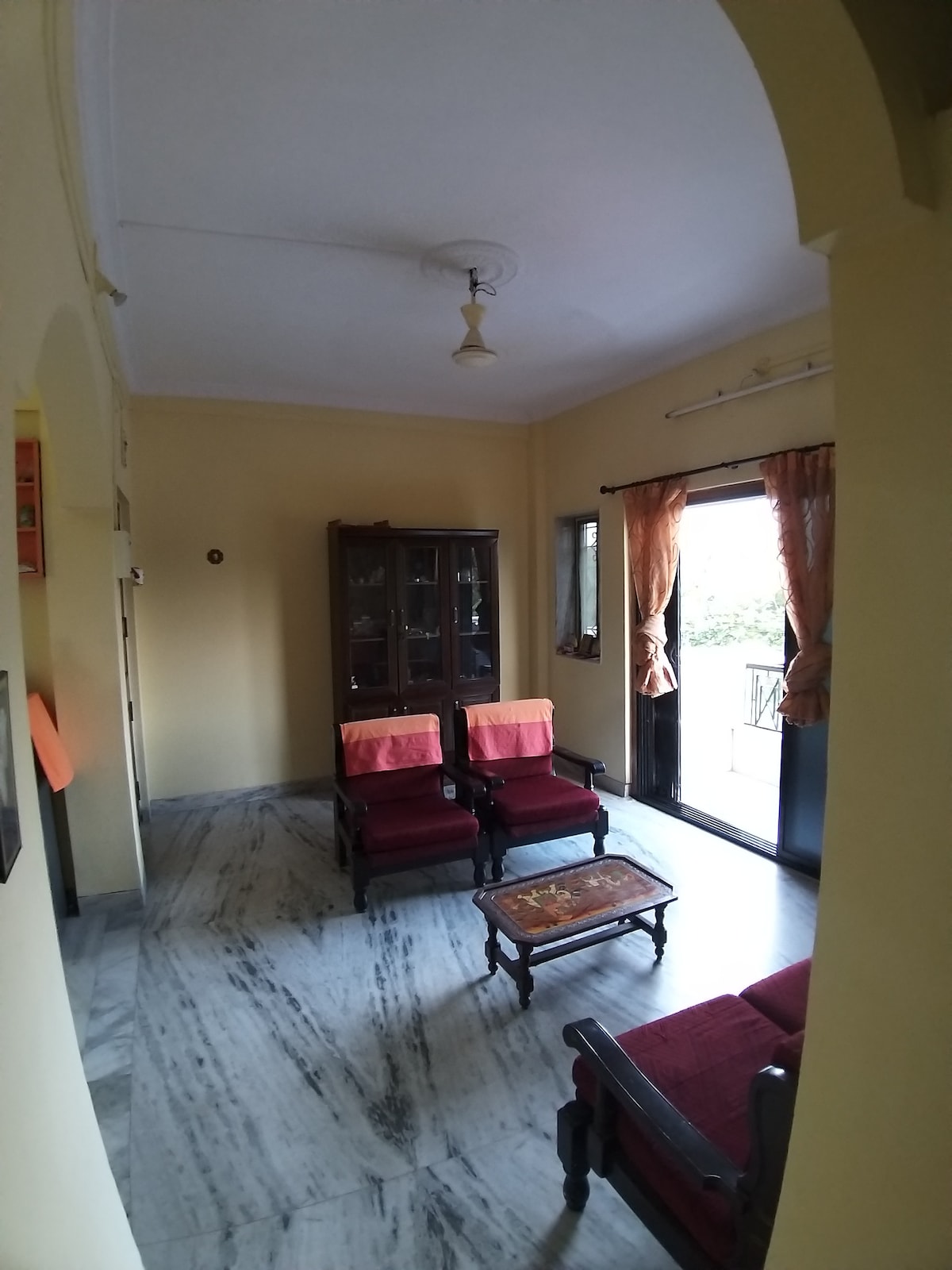 Only the first floor is available for renting. Good for 7 adults. First floor has two bedrooms. One with a covered terrace and the other with a small balcony. Two spacious bathrooms though not attached are just next to the bedrooms. There is a fully equipped kitchen. Living and dining area will be yours for the stay. Area around the house is full of fruit trees and other plants. Small ranges of hills on either side of the house make a kind of corridor bringing in cool breeze from the sea.