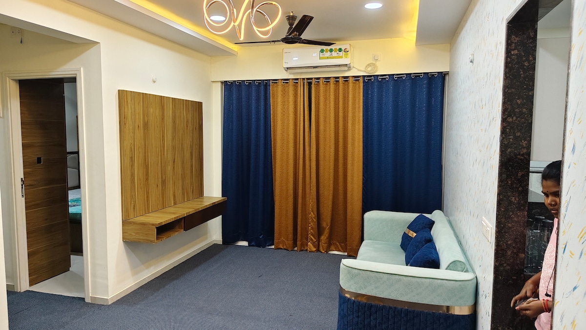Welcome to our family friendly luxurious apartment in the heart of Navi Mumbai 10min walk to Dronagiri Railway Station 30 min drive to main Mumbai via Atal Setu 5 min drive to the Uran Phirwadi beach 15 mins drive to CBD Belapur/Nerul 2 Min walk to premium restaurants grocery shopping and pharmacy shops Flat has beautiful interiors elegant finishing & lighting, AC in bedroom, sliding door closets & modular kitchen. A space that effortlessly combines style & comfort.