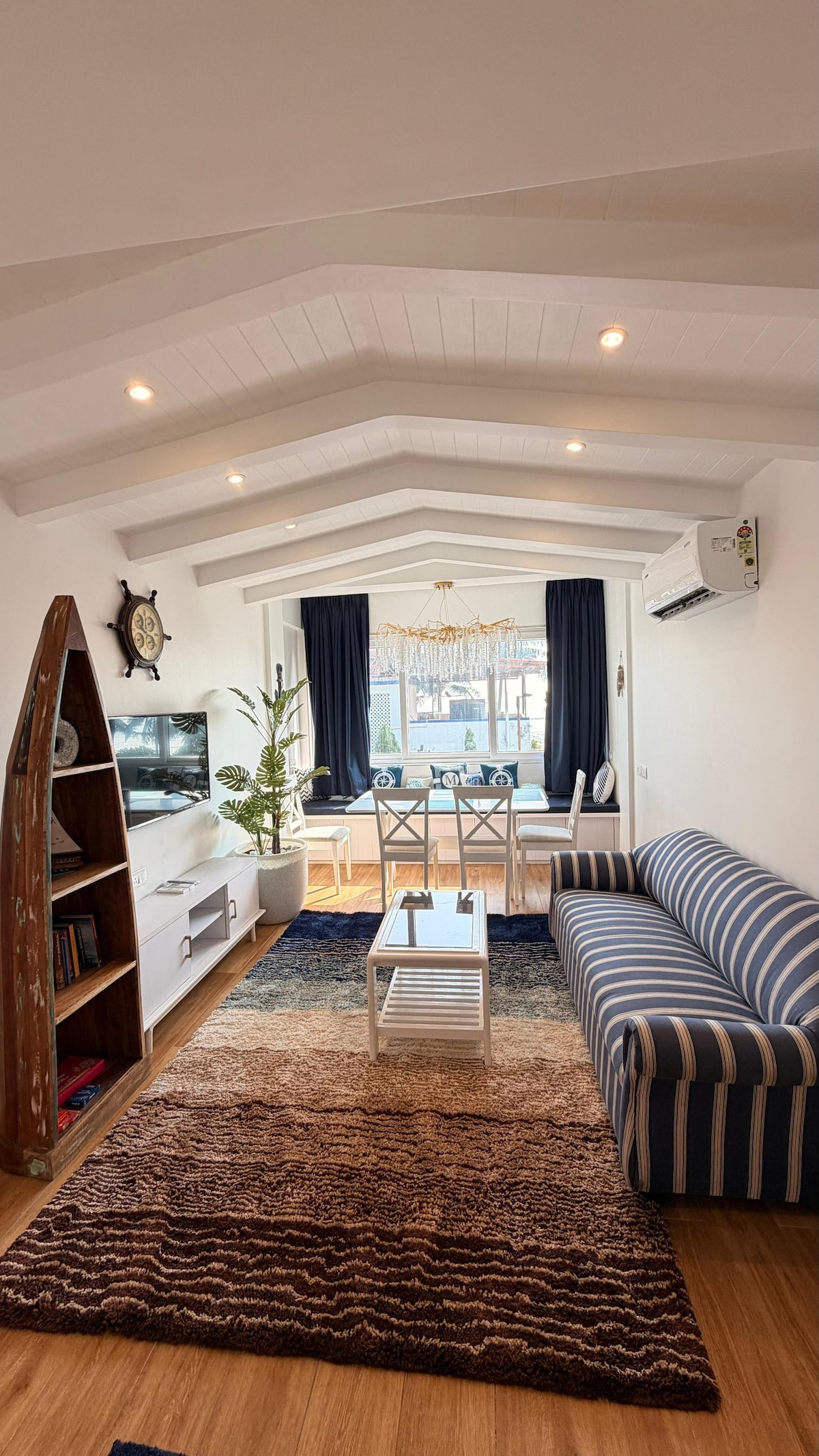 Welcome to your seaside sanctuary in Alibag! Our charming 2-bedroom, ground-floor apartment is a tranquil haven just opposite to the pristine shores of Alibag beach. Step outside to your patio and soak in the coastal vibes. It's an ideal spot for sipping morning coffee or enjoying evening cocktails as you listen to the waves. The proximity to the beach means you can easily take a leisurely stroll along the shoreline whenever the mood strikes.