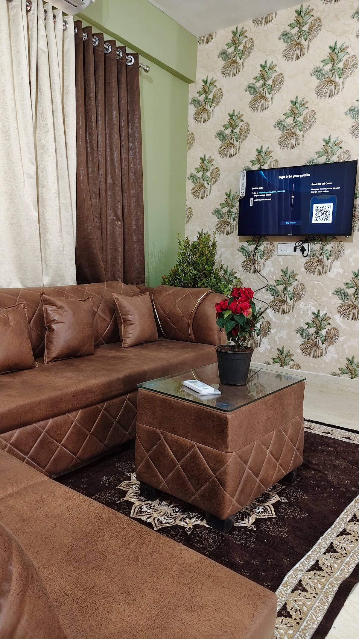 This is a fully-serviced 1-bedroom luxury apartment, just a 20 min drive away from Mandwa Jetty. Located with a complex of luxury suites, this home has a beautiful living room with balcony opening to green views, one bedroom with ensuite washroom and a fully-equipped kitchen.The home has all the modern amenities like a Smart TV, Wi-Fi and air-conditioning, ensuring you have a comfortable getaway. The nearest beaches are Kihim (15 mins) , Awas (20 mins), Thal (20 mins)