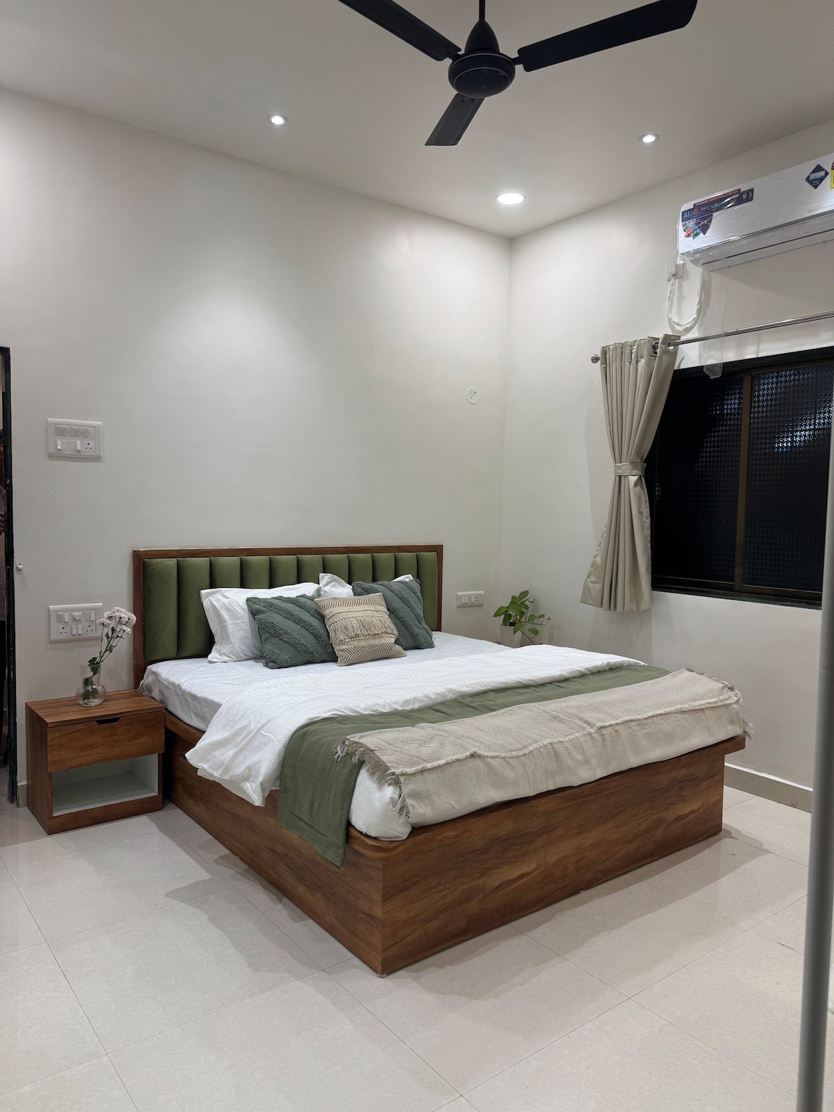 Welcome to Oasis, your cosy Alibaug hideout 🌊 This sun-filled 1BHK has a comfy bed, kitchenette, and breezy balcony for slow mornings. Enjoy beach walks, breakfast at home, or work with fast Wi-Fi. Daily housekeeping and cosy corners make every moment easy and calm. Perfect for solo resets, couples’ getaways, or quiet weekends, Oasis is your mini-vacation where time slows down ✨