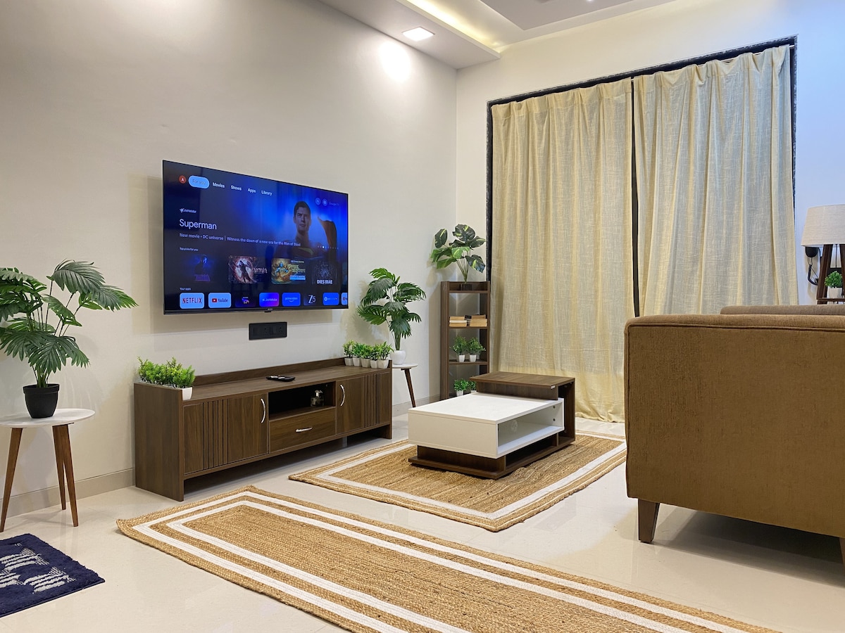 A warm 1 BHK apartment ideal for "Staycation" or "Workation" in Alibag-Varsoli, here you can enjoy a calm and peaceful stay. The apartment is equipped with uninterrupted Wi-Fi connection throughout the stay! You can also enjoy beautiful sunrise from the sociable terrace as you sip your cup of tea or drink coffee.