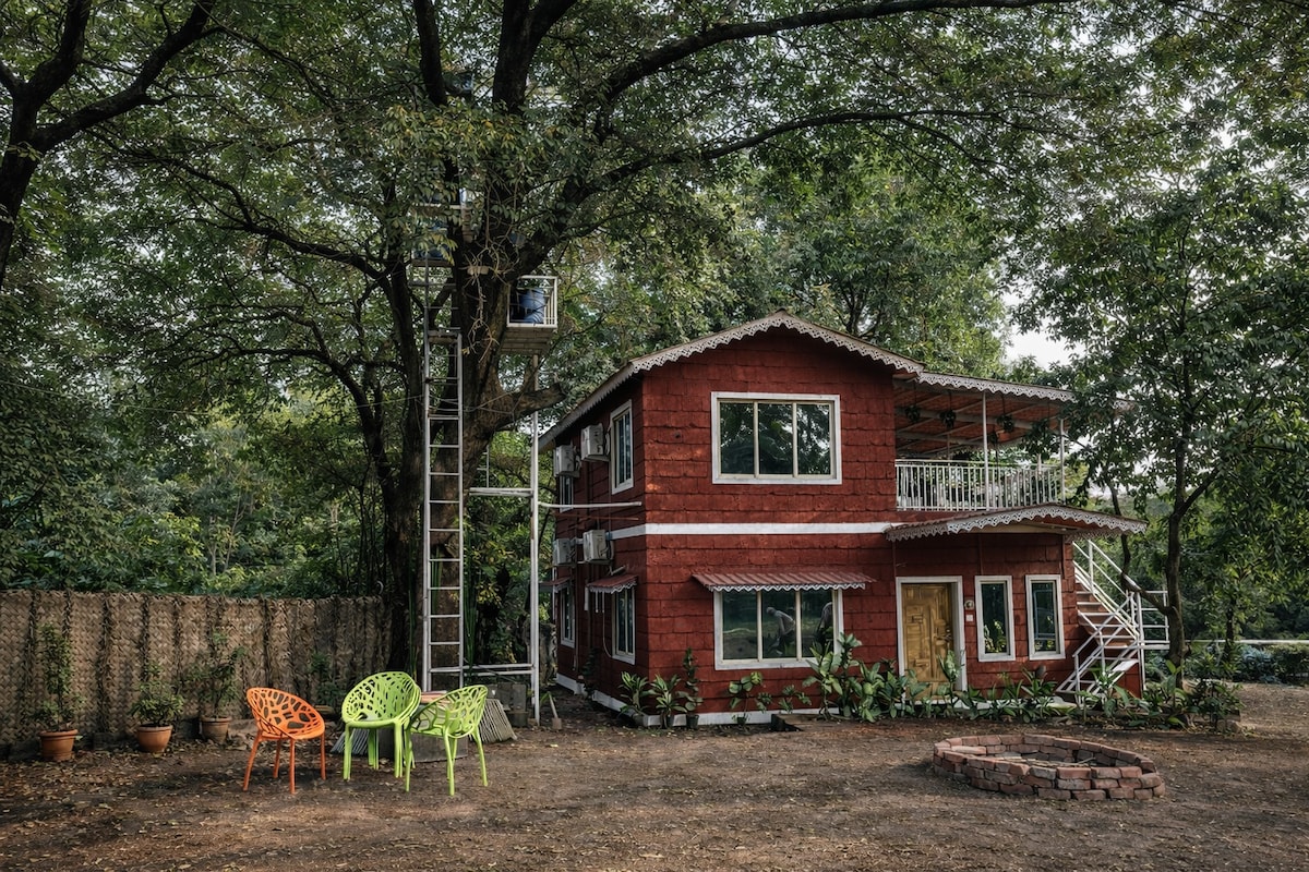 Welcome to Dome House, a serene duplex resort surrounded by lush greenery, where nature meets luxury. Dome house offers comfort with airy rooms, private jacuzzi bathtubs, and modern washrooms—perfect for relaxation. Unwind on your private balcony or garden, relax on a hammock, and enjoy the calming sounds of nature. The fresh breeze and rustling leaves offer an ideal escape. Dome House provides easy access to nature trails and a tranquil retreat where modern comfort and nature combine