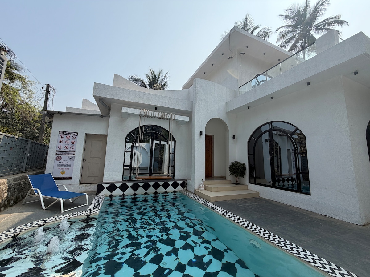 Inspired by slow mornings and garden views, this recently renovated villa comes with a green-toned suite offers two double beds, a bathtub with airy lighting. Ideal for families looking for Weekend Getaways or close-knit friend groups. Perfect for a bachelorette parties. Birthday celebrations, and Bachelorette. Short trips recommended: Nagaon beach - 5 kms away, Kankeshwar temple, Karmarkar Museum.