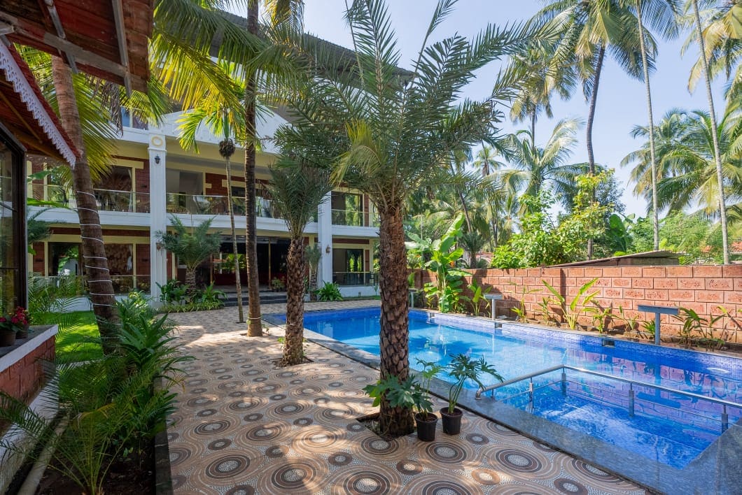 Blue Waves Resort – A tranquil 8-room retreat nestled in lush greenery, featuring a sparkling pool and modern interiors. Perfect for peaceful getaways, just minutes from the coast. Guests can enjoy personalized hospitality, a welcoming reception area, and an open-air dining space on the first floor where we serve delicious homemade meals. All rooms are conveniently located on the ground floor for easy access.