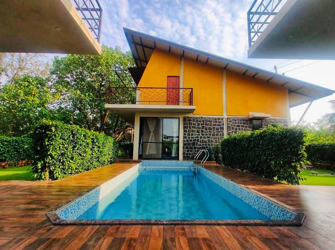 Surrounded by the beautiful verdant hills, accompanied by the fresh Sahyadri ranges stream running its edge offers a blissful sanctuary away from the chaos of urban life. At our quiet place, you are embraced by the rustling of leaves, the melodious bird calls. The unique, warm-toned, earthy finishes complement whitewashed walls to create a calm atmosphere. Make the most of the tropical weather spend your day floating in pool, walking barefoot on the lush, beautifully manicured lawn.