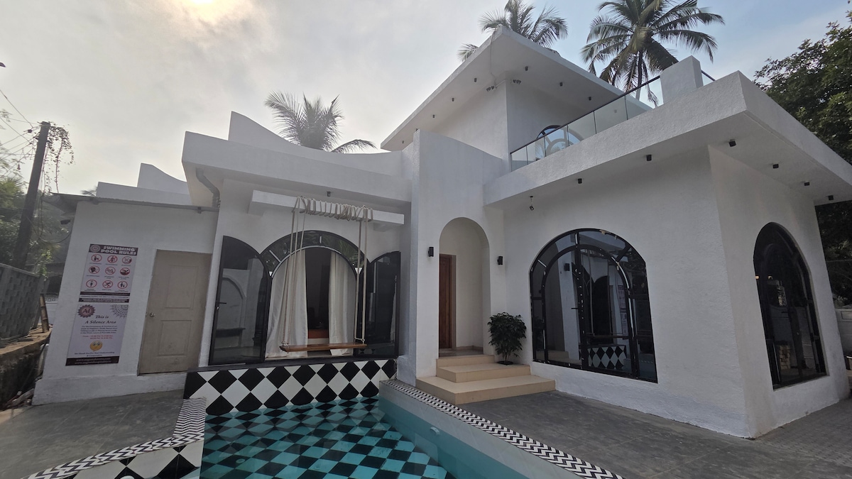 The GLASS HOUSE is a 7-MINUTE WALK from the delightful AWAS BEACH of Alibaug! Surrounded by greenery, mango trees, and with an open sky pool, this is a stunning spacious 2 bedroom pet friendly villa where you can kick back and relax in the midst of nature. ►Highlights → Pool: A good, big-sized private pool → Activities : TT Table, Basketball, Carrom, Cricket Batting Cage → Comfortable star quality mattress & laundry sanitised linens → Beautiful spacious washrooms with tub, toiletries, towels