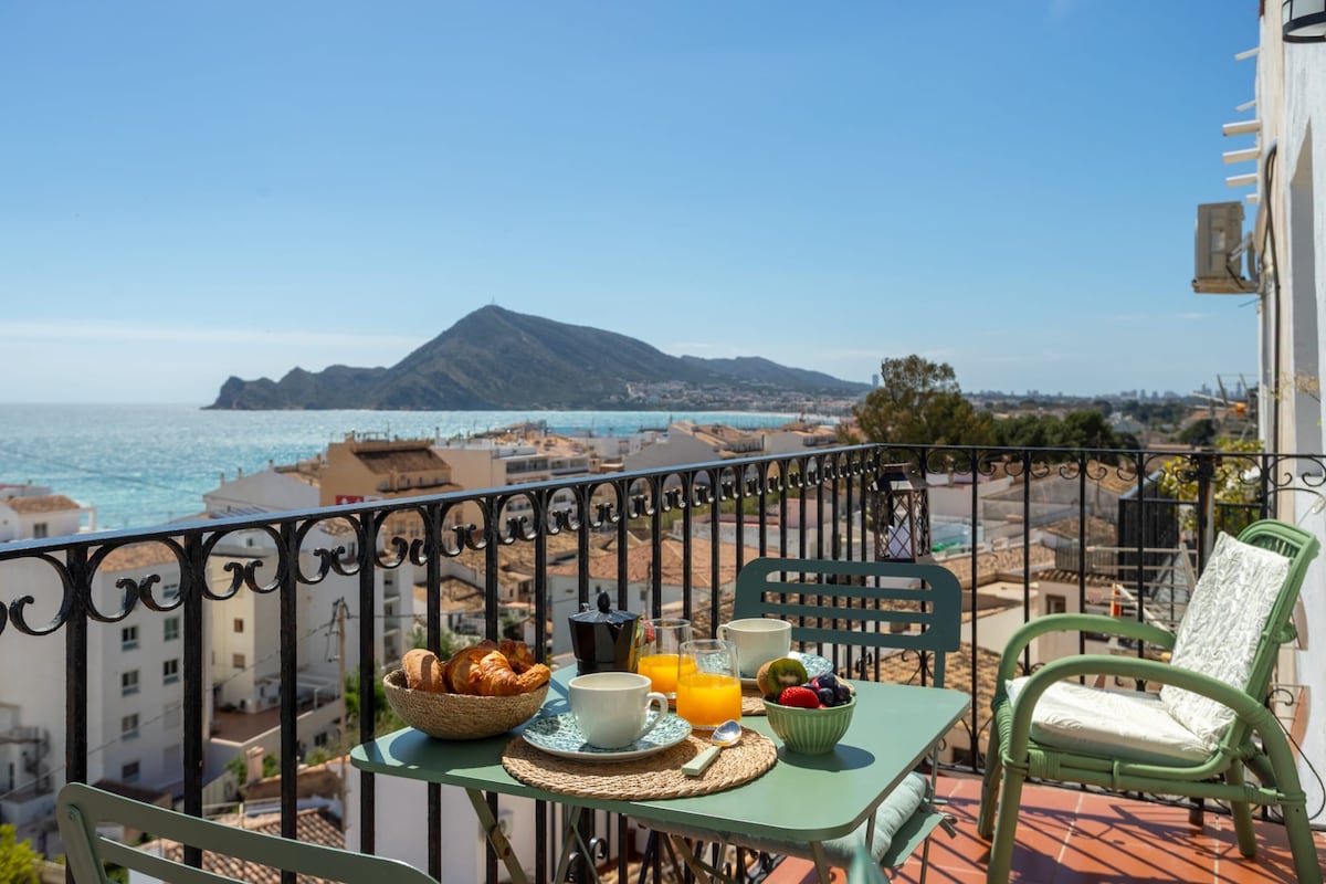 Welcome to Horizonte Azul, a cozy nest with astonishing views over the sea and the spectacular cliffs of the Moraig cove. Located in a pretty residential area, your two stylish rooms have individual entrances and are connected through a beautiful bathroom. On your private shaded terrace, an outdoor table and furniture w/sink allows you to prepare breakfast or cold bites. Activities? Book a private Pilates lesson on site, or enjoy hiking and other sports close by. We look forward to you staying!