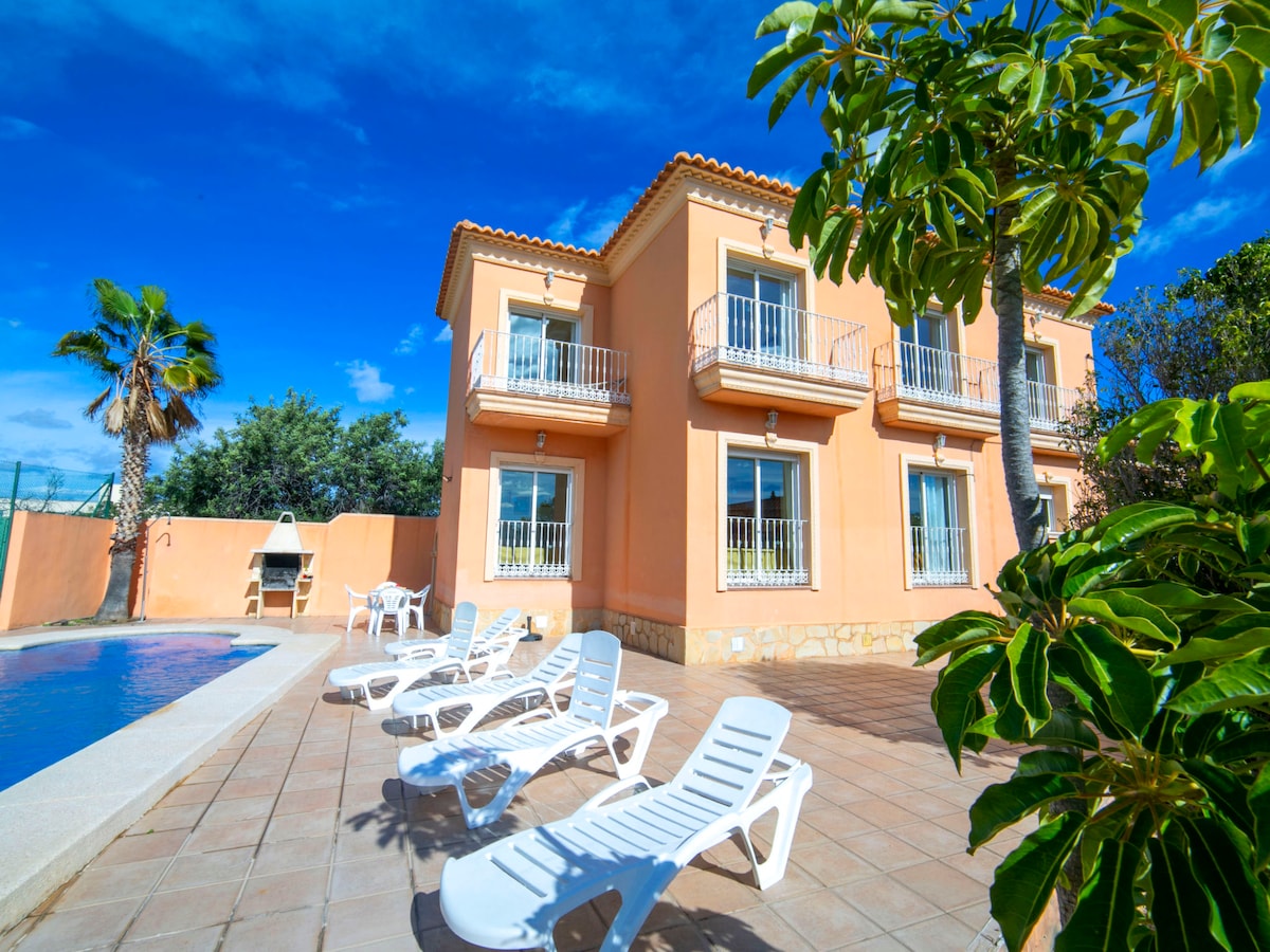 Full equipped two-story house just 100 meters away from the beach, and 3 min walking distance to the port of Javea. The ground floor includes a cozy garden and terrace, spacious living room, full equipped kitchen with separate laundry room, full bathroom and back terrace with direct access to the shared swimming pool and garden. The upper floor offers four bedrooms, three of them double-rooms (one suite bathroom) and one with two bunk beds. There is also another bathroom with bath tub.