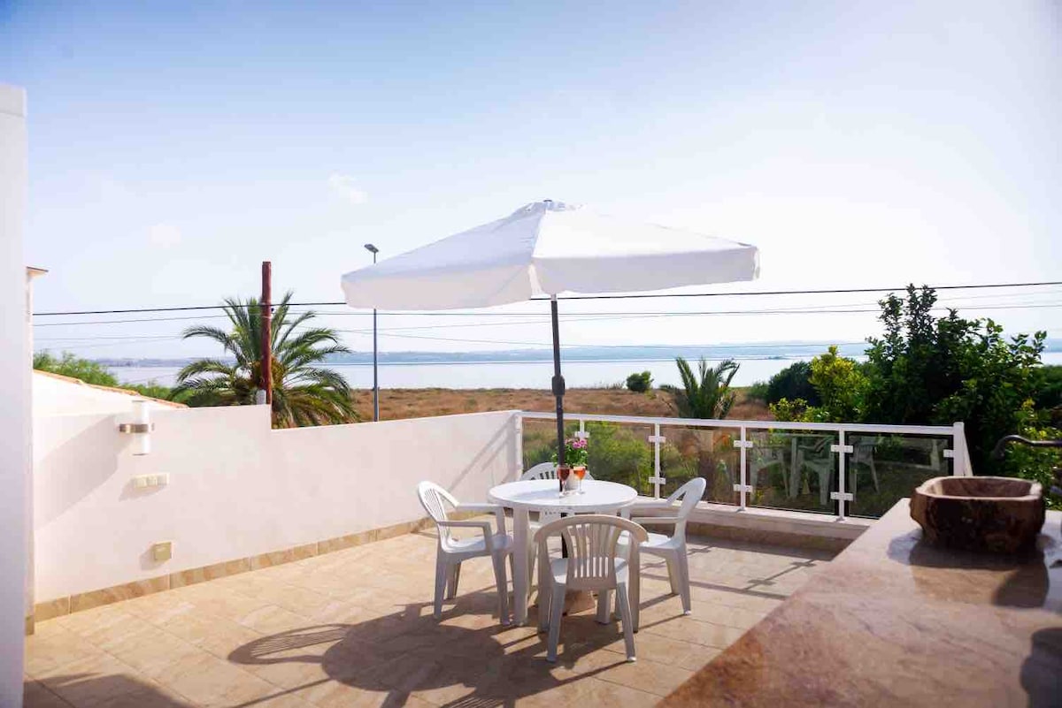 Relaxation by the sea🌴in a Tropical Garden Two floor house, fully equipped kitchen, BBQ terrace, AC cold/hot in every room, foam mattresses, Free parking 3 seasonal & 1 allyear exterior pool (NOT heated) free sport fields, restaurants and pubs in 200m. Across the street: 360ha nature reserve. 300m stroll to a 3 km blue-flag beach. Busses to Alicante, Santa Pola, Elche, ALC Airp. Breakfast option at the nearby cafe for a discounted price. Hiking, biking, and charming day-trips Wifi:5g-600mbs