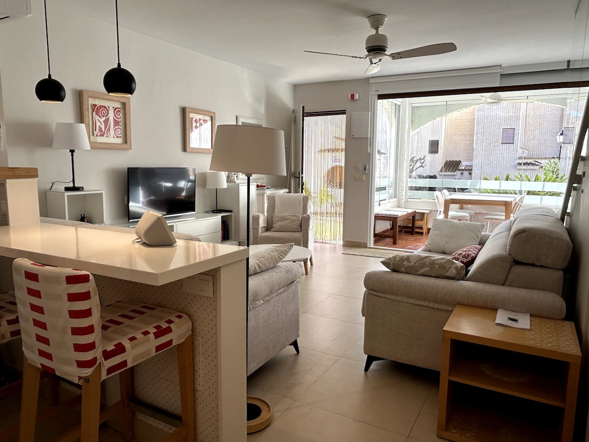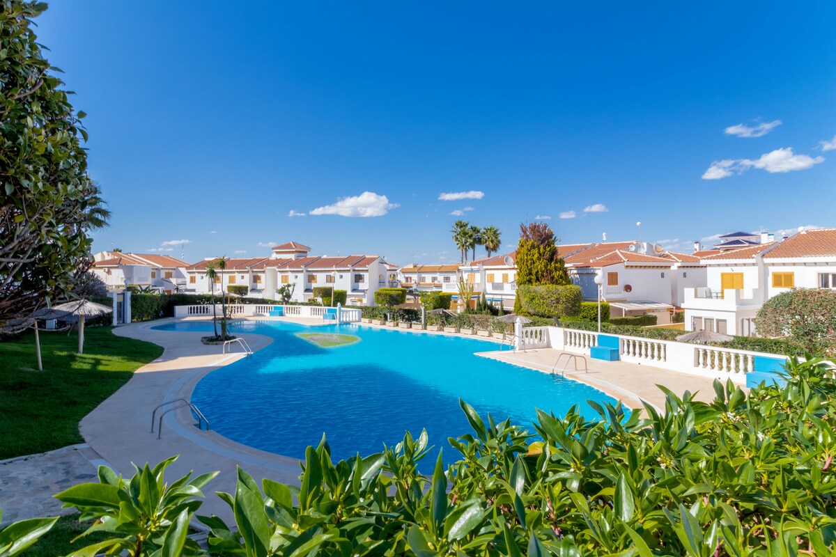 The house is part of a frontline beach housing complex, imitating a Mediterranean village, with streets and pedestrian walkways, landscaped parks, in an enclosure. The swimming pools are open from June to September. Places of interest: -15 km away from an international airport, 18 km from the city of Alicante and Elche, and 30 km from Benidorm. -This is a village with health and socials.Fishing port and daily fish market.