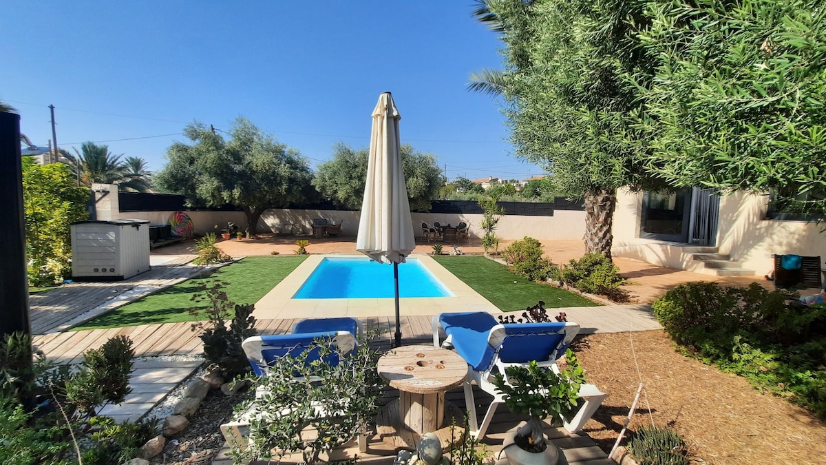 Welcome at home! Your new 250 m² luxury villa with 600 m garden, private swimming pool and BBQ, located in a small and exclusive neighbourhood very close to beach. The tasteful and exclusive interior fittings and furnishings invite you to relax and enjoy every moment, completely undisturbed. There are two Golf Courses at 10 mns drive. Although there are two bus lines or it's easy to get a taxi to come at the door house, it is preferable to have a car to go to the beach or Alicante.