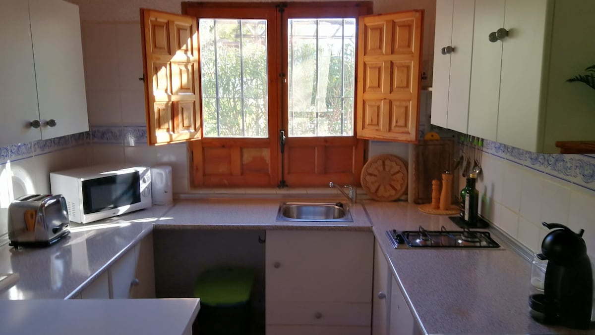 Casita de invitados totalmente independiente en amplia propiedad. A las faldas del parque natural del Montgo. A 2 km del pueblo de Javea, a 4 km del golf La Sella, a 8 Km de Dénia, a 3 km del pueblo de Jesús pobre. A 15 minutos en coche de preciosas playas y calas. Se pueden hacer paseos maravillosos por el bosque Mediterraneo y encontrar preciosas vistas al valle. Muy cerca de restaurantes, supermercados, y la amplia oferta de ocio, senderismo, golf, playas, montaña y mercadillos típicos zona.