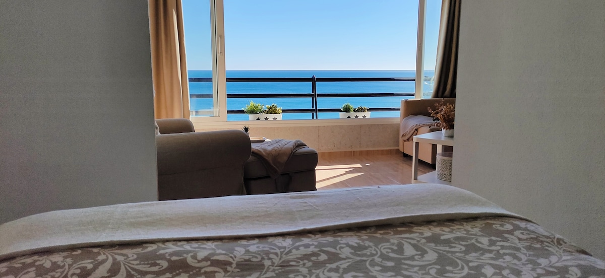 Wonderful Loft (40mts) in front of the beach. Really nice views. Specially for couples (cozy and romantic). Unly room for Bed , dining room kitchen and balcony. Very pleasant. Until 4 people. Free private comunitary parking. Train line conection at 150 mts to all the coast . Nautical Activities. Montains towns less than 40 minutes driving. Wifi service. . FULLY RENOVATED AND FURNISHED