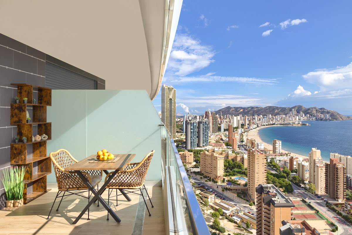 Luxury Apartment in Benidorm with a Large Terrace Overlooking Poniente Beach We invite you to rent a new 100 m² apartment located on the 30th floor of a luxurious 37-story newly built skyscraper in the heart of Benidorm. This elegant apartment is the perfect place to relax and unwind in the highest standard. The property is just a 5-minute walk from the beautiful, sandy, public Poniente Beach, allowing for quick and easy access to the sea.